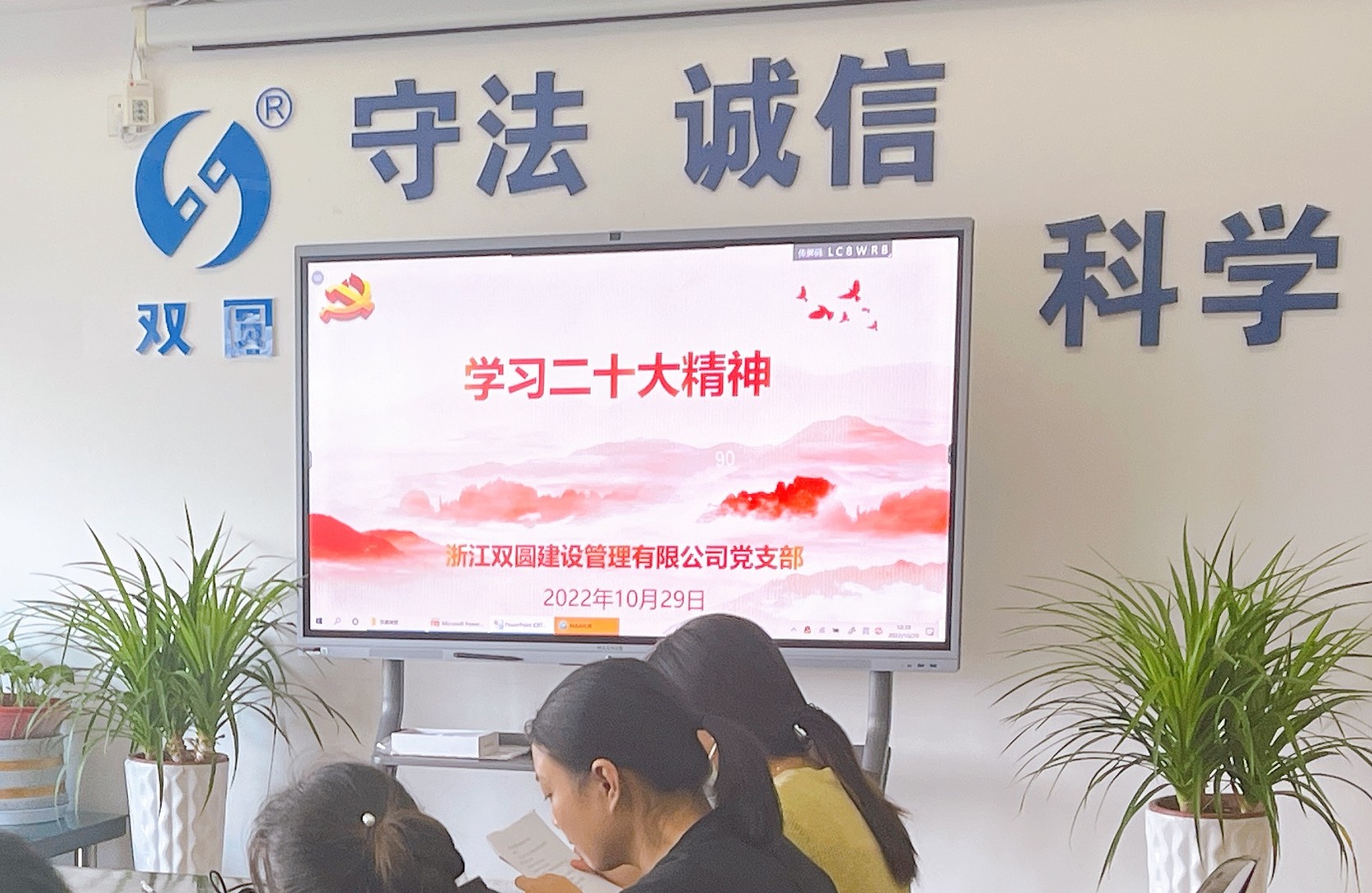 10月29日上午,浙江雙圓建設(shè)管理有限公司黨支部組織召開支部黨員大會(huì),專題學(xué)習(xí)二十大報(bào)告精神,會(huì)議由支部書記姜桂軍同志主持。公司黨員(含流動(dòng))、入黨積極分子、部分機(jī)關(guān)人員20余人參加。...