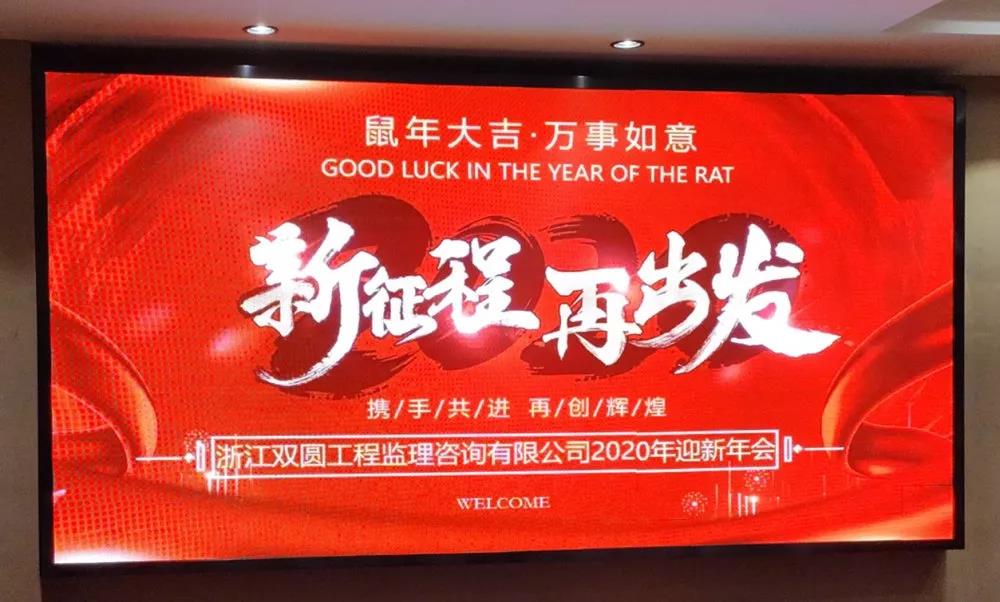回首2019, 我們風雨同舟,砥礪前行, 有風和日麗,也有驚濤駭浪; 展望2020, 我們重任在肩,將繼續,昂首闊步 朝著新目標,邁入新征程, 譜寫新的篇章 光陰似箭,歲月如梭。辛苦了一年的雙圓人迎來了自己的年會,值此辭舊迎新之際,浙江雙圓監理 “新征程,再出發” 2020年迎新年會于202...