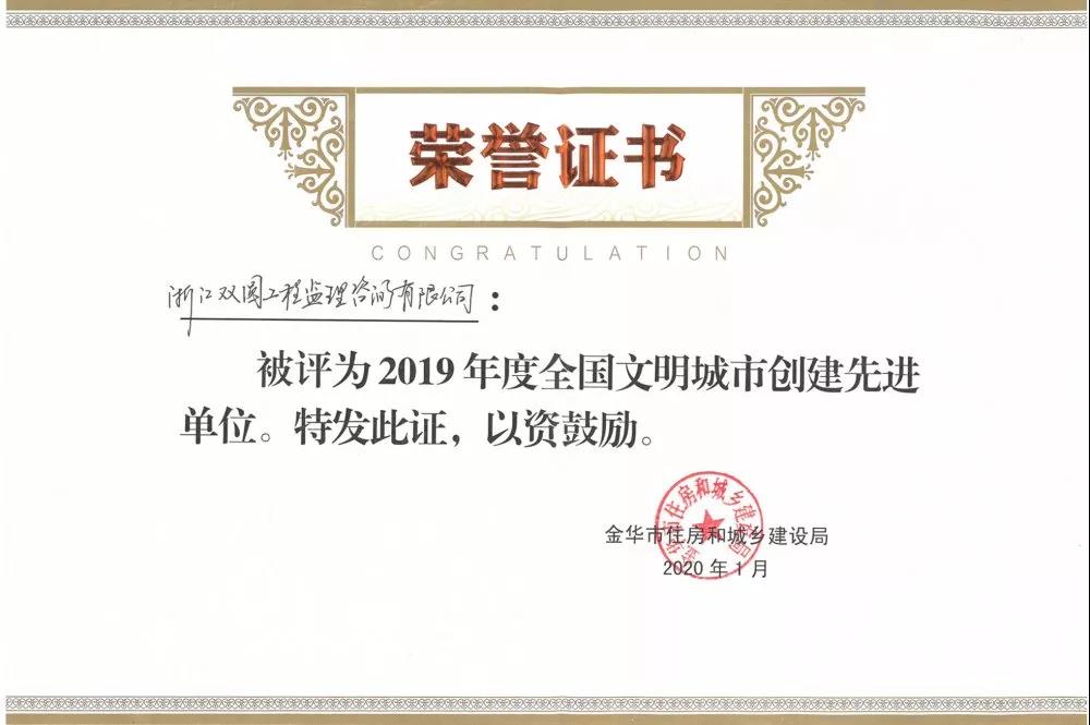 新年伊始,在金華市住房和城鄉建設局“2020中國夢·住建情”的職工文藝匯演表彰儀式上,浙江雙圓工程監理咨詢有限公司繼2018年度后再次被評為“全國文明城市創建先進單位”,公司姜桂軍董事長上臺領獎。...