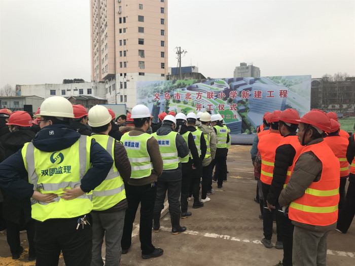 2019年2月28日,由我公司監(jiān)理的義烏北方聯(lián)小學新建工程開工儀式在項目現(xiàn)場隆重舉行。金華市副市長、義烏市市長王健;市政協(xié)主席葛國慶;市人大常委會副主任傅春明;教育局黨委書記、局長葉國江;城投集團黨委書記、執(zhí)行董事張旭明等領(lǐng)導參加;市委辦、市府辦、住建局、教育局等14家單位主要領(lǐng)導和部分工作人員出席了開工儀式。我公司副總經(jīng)理李國期率公司工程部及監(jiān)理部人員代表本項目監(jiān)理單位參加了開工儀式。