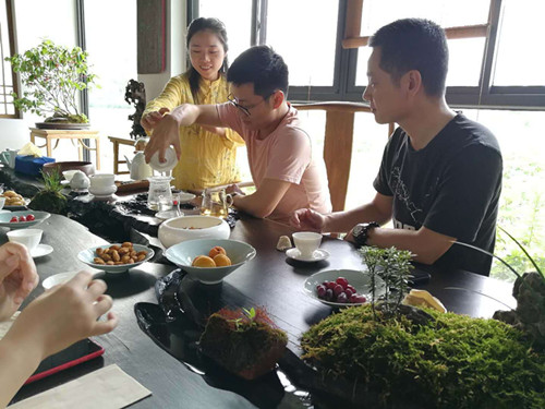 隨后,茶藝師以白茶為例,向大家演示并講授沖泡流程、技巧和禮儀,并從擺放茶具、坐姿手勢、潔具溫杯、嗅香、倒茶、品茶等環節手把手式的傳授給大家,大家都在輕松的歡笑聲中實踐模仿,自泡自品,感受每道茶湯的不同味道,從入口到咽下的過程就像人生的歷程,深切的感悟到人生如茶,有著各種各樣的經歷。