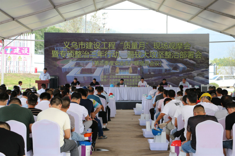 9月29日下午,義烏市建設工程“質量月”現場觀摩會暨專項整治三年行動、遏較大攻堅整治部署會在我司監理的義烏市東大門學校新建工程召開,義烏市住建局、市質監站、城投集團等單位相關領導及施工監理單位共計400余人參加。
