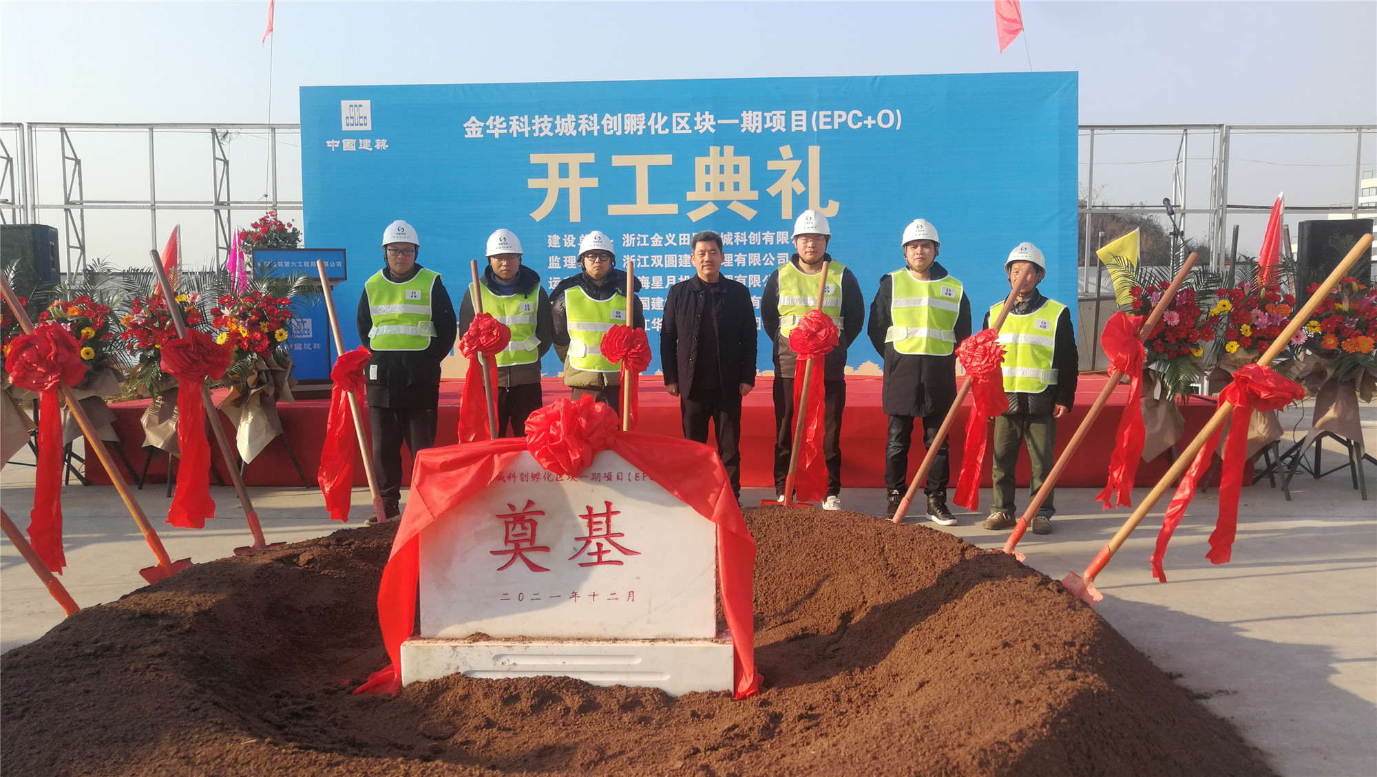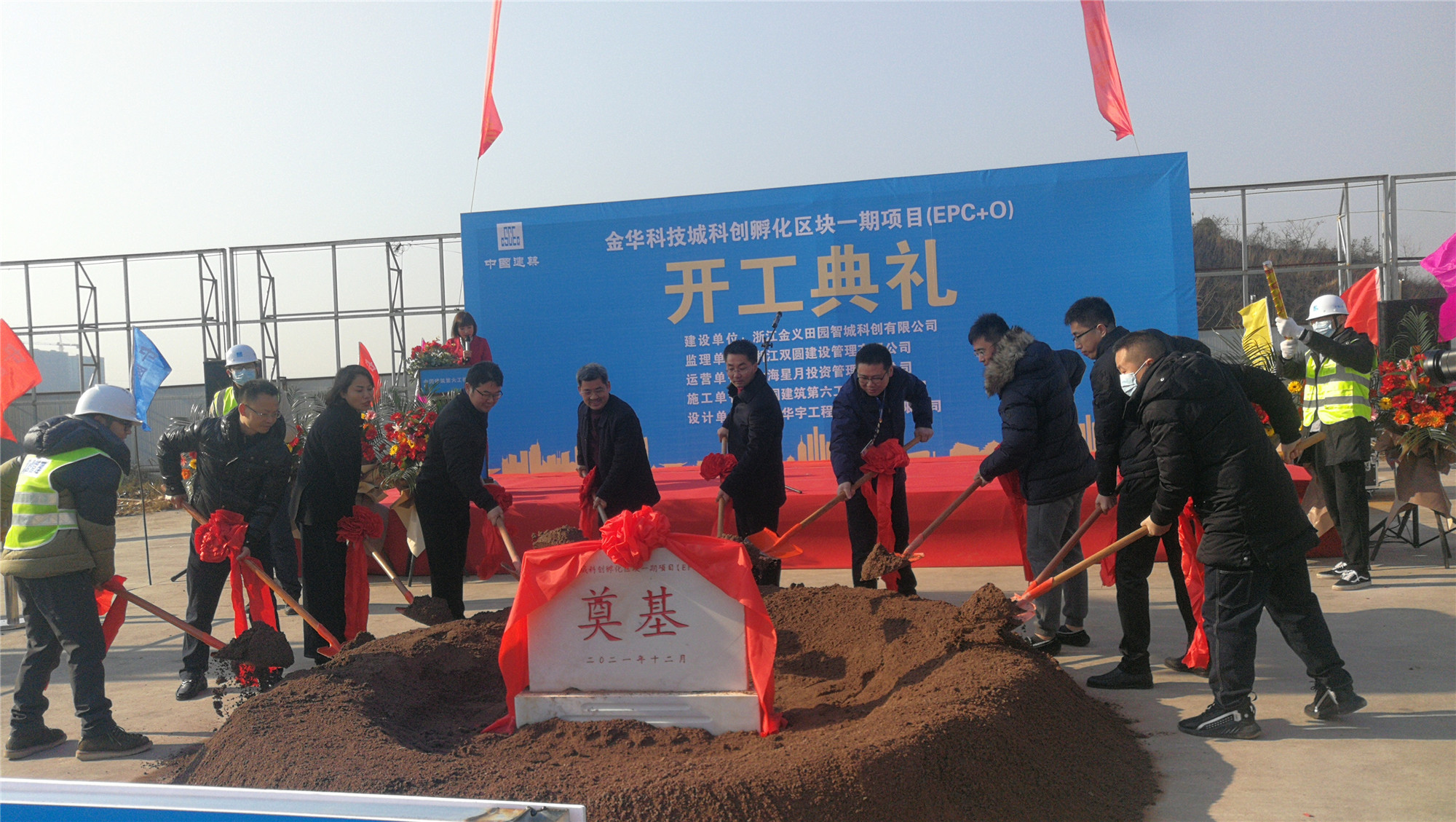 2021年12月31日上午,我公司監理的金華科技城科創孵化區塊一期項目(EPC+O)奠基儀式隆重舉行,金義新區發展集團智園實業有限公司領導、各參建單位企業負責人、及項目部相關人員,共100余人參加開工奠基儀式。