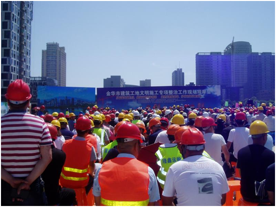 5月24日上午,市住房和城鄉建設局在金華信息經濟產業園二期工程舉辦的“金華市建筑工地文明施工專項整治現場觀摩會”。我公司領導王斌、陽橋輝、盛小健帶領市區二環路范圍內在建工程的8名項目總監參加了觀摩會。