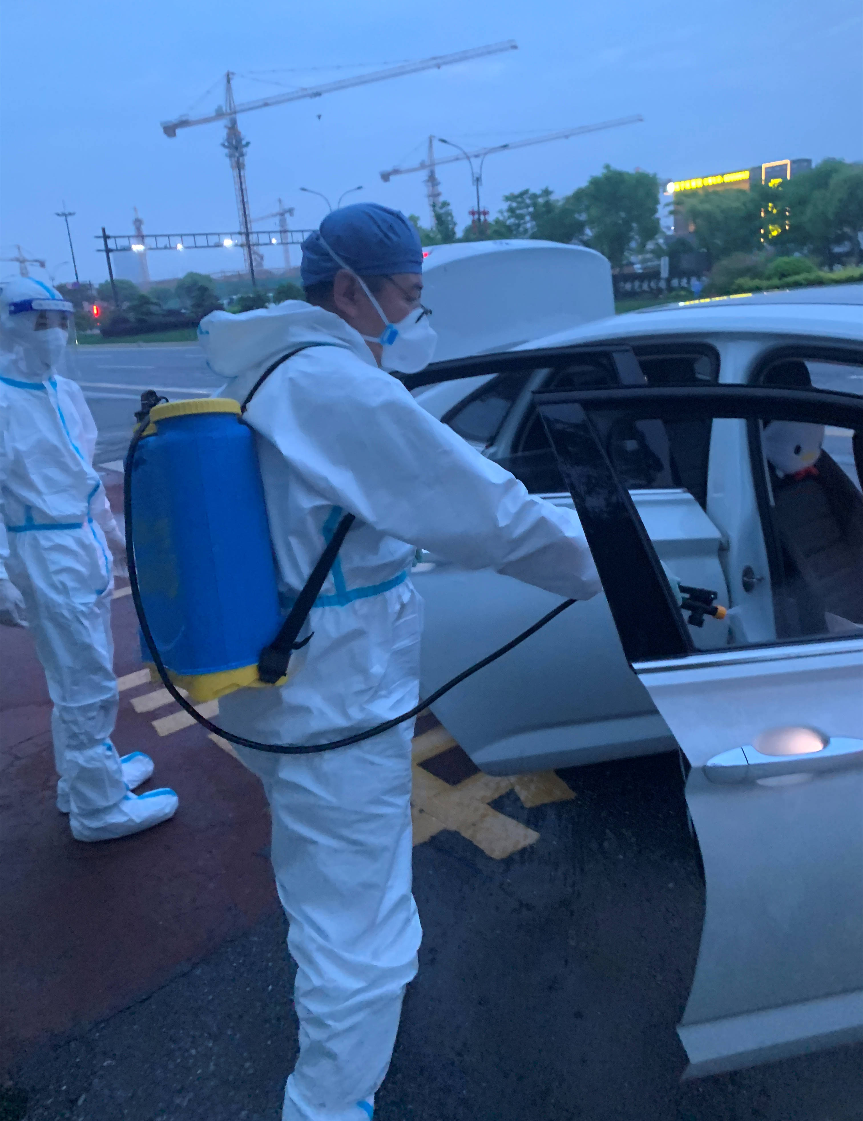 在這場(chǎng)疫情防控阻擊戰(zhàn)中,身披“戰(zhàn)甲”,肩背“霧器”的他,雖然沒(méi)有醫(yī)護(hù)人員那么引人注目,但卻不辱使命,不負(fù)重托。截止23日,他已對(duì)數(shù)百車(chē)輛、人員進(jìn)行了消殺,及時(shí)有效切斷了病毒傳播鏈,筑起了一道堅(jiān)實(shí)的防御屏障。