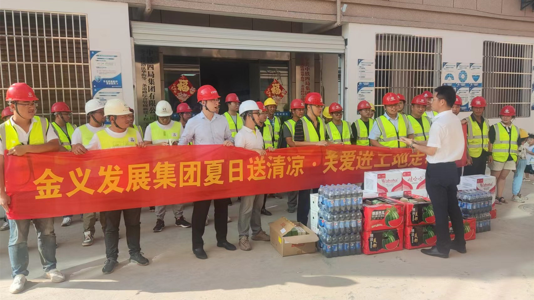 連日來,金華高溫持續(xù)不退,給工地建設帶來了嚴峻的考驗。為切實維護和保障一線勞工的身心健康,做好建筑工地夏季安全生產(chǎn)工作,有序推進項目建設。7月21日,金義發(fā)展集團總經(jīng)理錢建榮帶隊一行蒞臨我司監(jiān)理的金義新區(qū)沿法華街等三條道路綜合管廊項目,向堅守在高溫下的一線戶外工作人員慰問,為他們送上夏季防暑降溫用品。