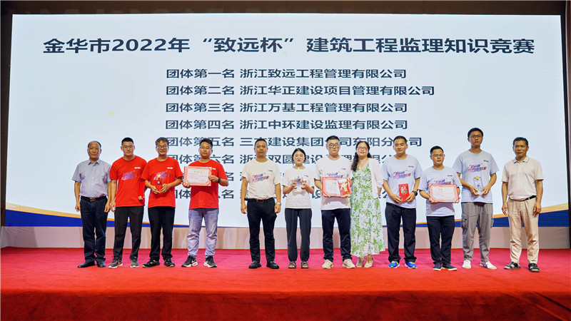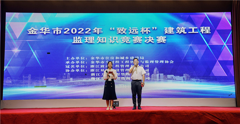 為進一步提高工程質量安全監理工作總體水平,切實提升監理人員業務能力,全面落實2022年安全生產月“遵守安全生產法、當好第一責任人”活動主題精神。在 “致遠杯”監理知識競賽復賽圓滿完成的基礎上,7月26日,由金華市住房與城鄉建設局主辦,金華市全過程工程咨詢與監理管理協會承辦、我公司協辦的“致遠杯”建設工程監理知識競賽決賽在金華世貿大飯店開賽。活動主持人由我公司副總經理葉冀楠主持。