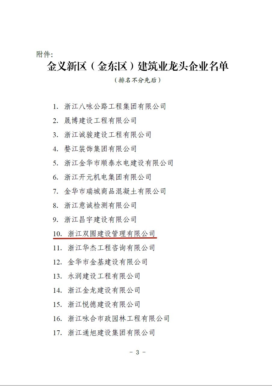 機會源于實力,公司連續(xù)四年獲評“建筑業(yè)龍頭企業(yè)”,既彰顯了公司在經(jīng)營效益、工程效益、創(chuàng)新發(fā)展、人才培養(yǎng)等方面具有突出的優(yōu)勢,也是公司綜合實力的重要標志,更體現(xiàn)了上級主管部門對公司近年來和未來發(fā)展的肯定和良好預期。未來,公司將再接再厲,積極開拓創(chuàng)新,做大做強,充分發(fā)揮龍頭企業(yè)引領、示范作用,不斷強化施工現(xiàn)場管理,保障工程質(zhì)量安全,積極創(chuàng)建優(yōu)質(zhì)工程,引領市場行為規(guī)范,為金義新區(qū)(金東區(qū))高質(zhì)量建設和美金東,高水平打造希望新城,高質(zhì)量發(fā)展建設共同富裕示范區(qū)做出新的貢獻。