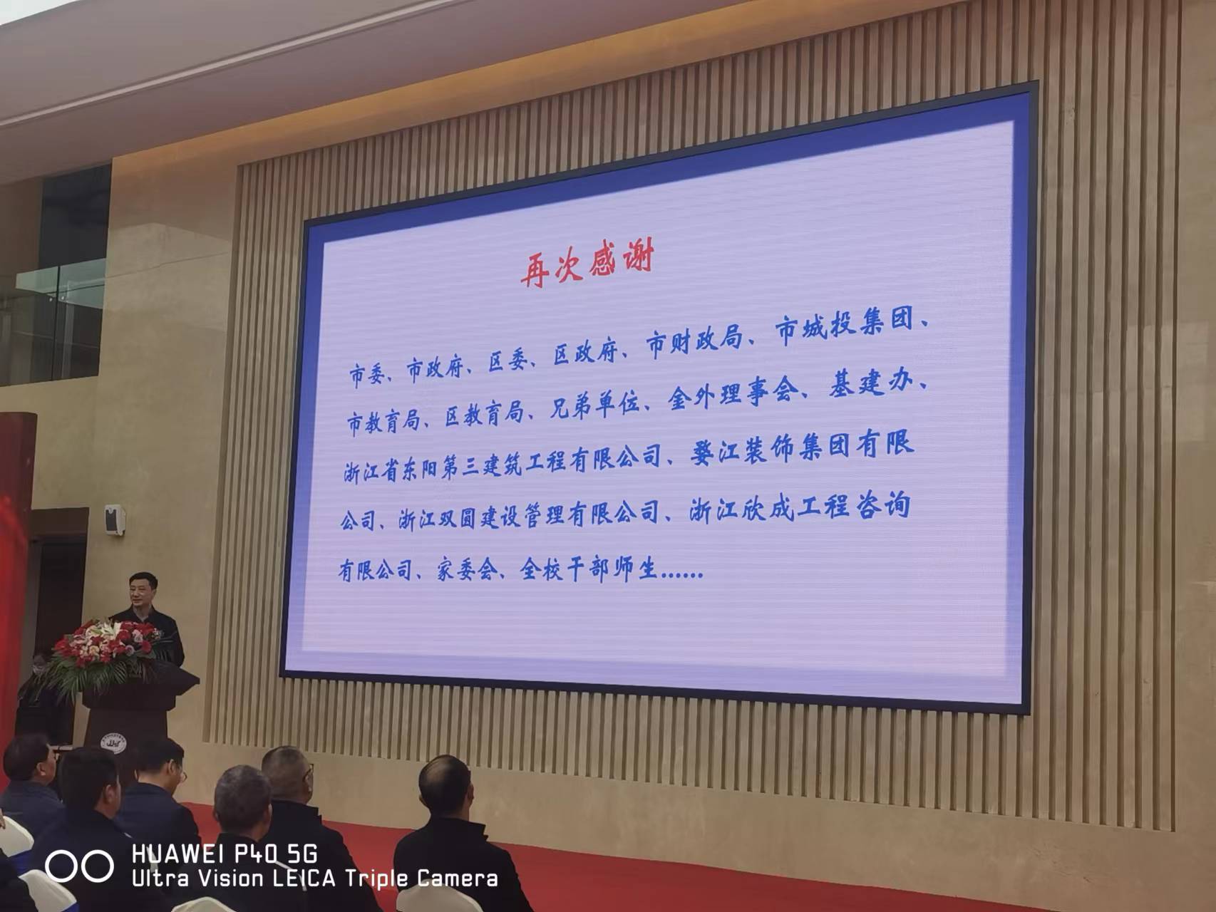 12月11日上午,由我司監理的一座實力與顏值并存的金華市外國語實驗學校小學新校區項目揭開美麗面紗,以全新的姿態迎接同學們的到來。金華市副市長莊凌飛,金東區區委副書記、代區長毛世梁,金華市教育局黨組書記、局長樓偉民等相關領導參加新校區啟用儀式,我司董事長姜桂軍和公司總工、項目總監陽橋輝受邀出席儀式。