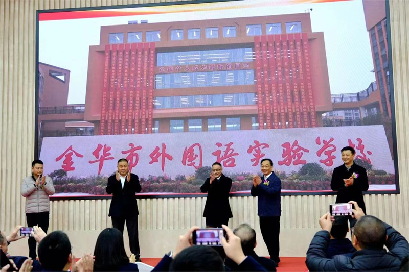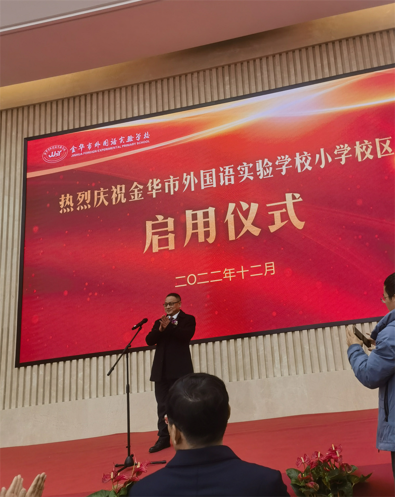10:18分,莊凌飛副市長宣布金外實驗小學新校區正式啟用。禮炮響起,“十、九......三、二、一!”,隨著大家整齊的倒計時聲中,與會領導一同為新校區揭幕,“金華市外國語實驗學校”幾個大字也緩緩呈現,小學新校區就此啟幕。