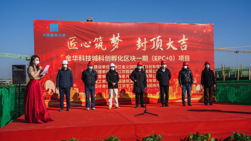 12月23日上午,金華科技城科創(chuàng)孵化區(qū)塊一期(EPC+O)項目舉行封頂儀式。項目各參建單位代表們歡聚一堂,共同參加隆重而喜慶的封頂儀式。項目啟動以來,歷經(jīng)了數(shù)百個日日夜夜,克服了高溫及疫情雙重影響,經(jīng)過各參建單位的精誠合作,艱苦奮戰(zhàn),終不負期盼和等待,在這個冬日暖陽下,17萬方,12幢建筑主體全部榮耀封頂!