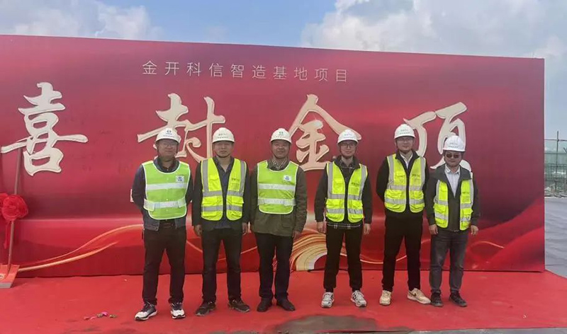 4月26日上午8點58分,金開科信智造基地項目隆重舉行結頂儀式,現場氣氛熱鬧非凡,聳立的大樓主體被紅色祝福標語裝扮得格外喜慶。各建設主體單位及公司項目監理部全體人員參加結頂儀式。