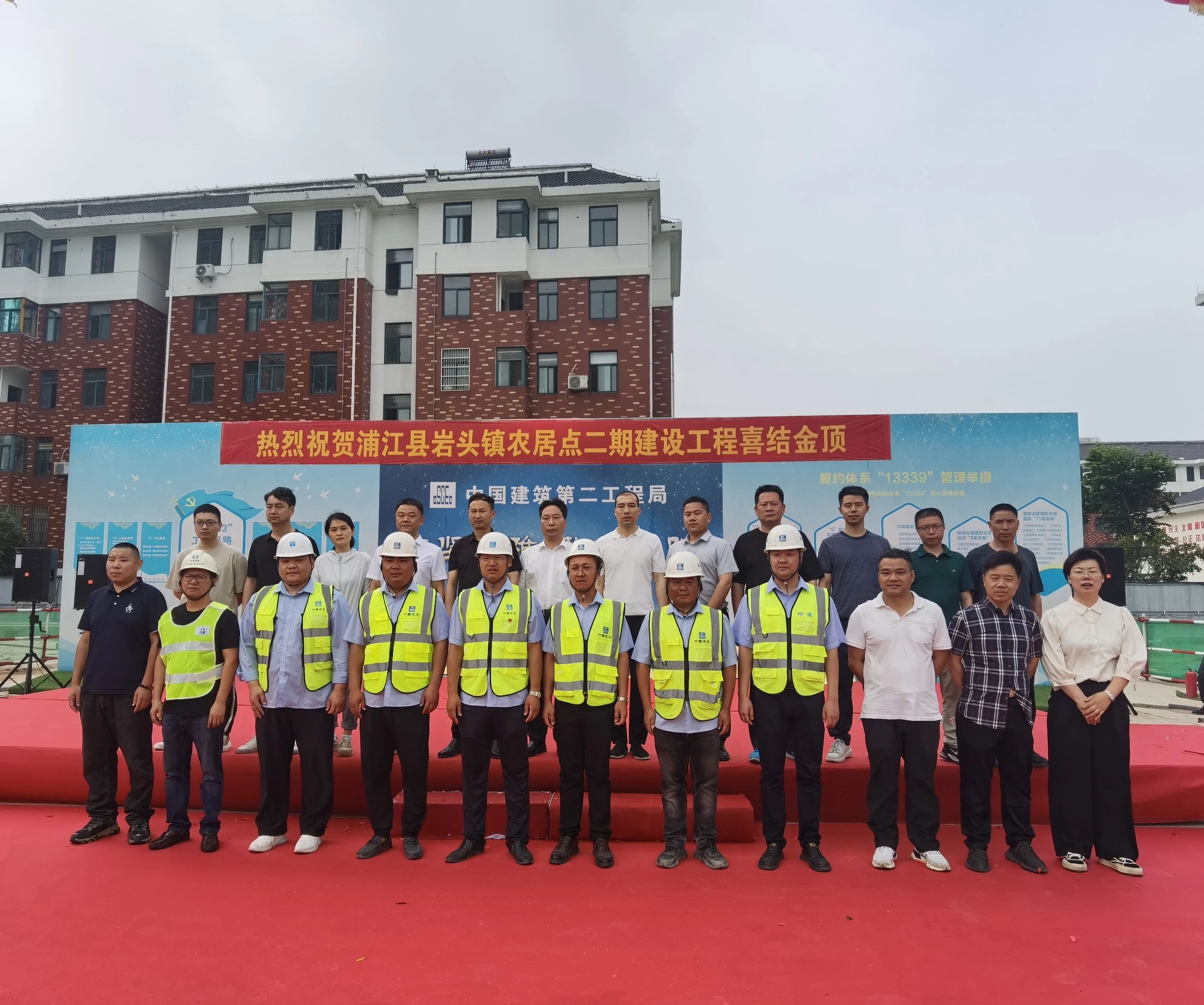 5月31日上午7:50,浦江縣巖頭鎮農居點二期建設工程主體結構全面封頂。浦江縣人大主任、浦江縣巖頭鎮黨委書記、各級村委書記、建設主體單位及項目監理部全體人員參加結頂儀式。