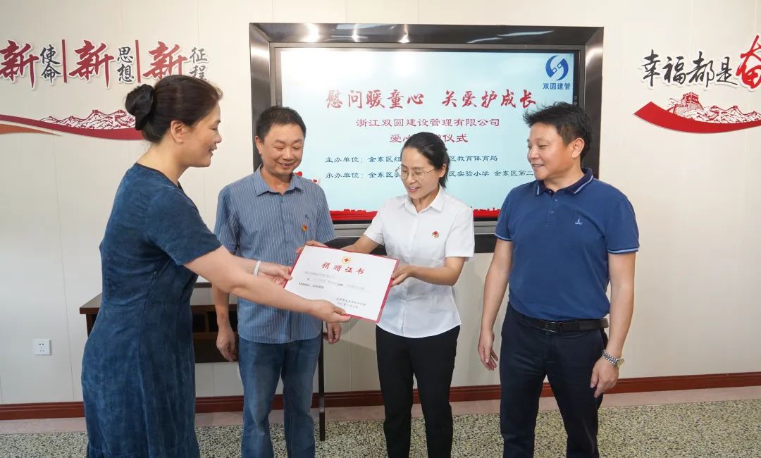 “慰問暖人心 關愛護成長”浙江雙圓建設管理有限公司捐贈儀式由金東紅十字會與區教體局聯合牽頭組織。儀式上,雙圓建管為來自金東區約20位家庭困難或身患殘疾的兒童們送上慰問金,以微薄之力,幫助他們減輕部分生活的負擔。