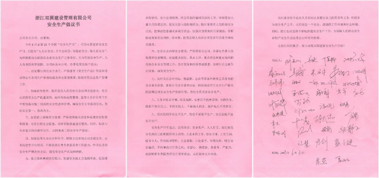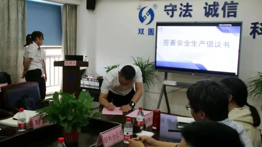 會上,為貫徹執行“人人講安全、個個會應急”的主題要求,扎實開展“安全生產月”各項工作,全面落實企業安全生產主體責任,陶總作動員講話,宣讀公司“人人講安全、個個會應急、每監必安全、每人皆安全”安全生產倡議書,要求全員積極參與,全面落實,并與參會人員共同簽署了《安全生產倡議書》。