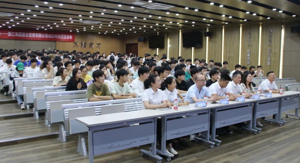 宣講會現場座無虛席,吸引了200余名建筑相關專業的學生參加。首先,金職院建工學院院長周宏為學子們寄語,他指出,雙圓建管是建工學院緊密型校企合作企業,也是一個有大愛、有高度社會責任感的企業。雙圓建管走進金職,與建工學子面對面宣講,為建工學子創造了一個近距離了解行業、了解企業、雙向選擇的就業機會,希望大家能從宣講會中有所領悟,有所收獲。