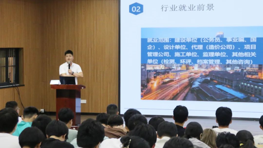 雙圓建管團隊年輕,富有活力,公司執行董事陶奉孝雖是80后,卻已工作多年,積累了豐富的工作經驗,在建工學子面前已然是前輩身份。因此陶總以“人生萬里路,走好第一步”為主題,總結了十二點心得體會:選好平臺、跟對師傅、學好知識、打好基礎、善于總結、修正心態、輪崗實訓、積極考證、咬定目標、學會分析、精通專一領域等。希望學子們在人生萬里路上,順利走好人生第一步。