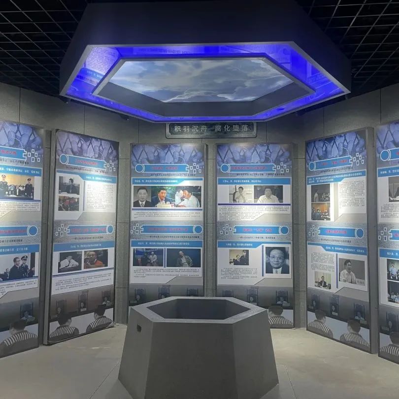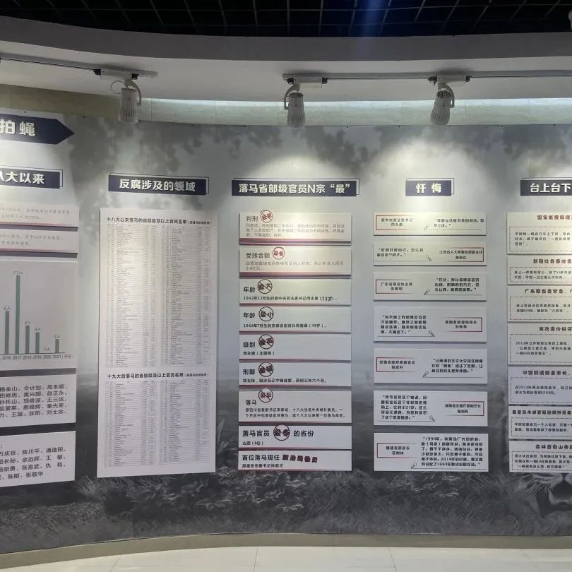 展廳集中展示了十八大以來省內外被查處的反腐典型案例,案例涵蓋了貪污受賄、權色交易、濫用職權等多個領域。案例詳細闡述了涉案人員如何踏出邁入歧途的第一步,從而一步步身陷囹圄。充分說明了人生如棋,棋局萬變,一著不慎,滿盤皆輸,守規矩才能成方圓。