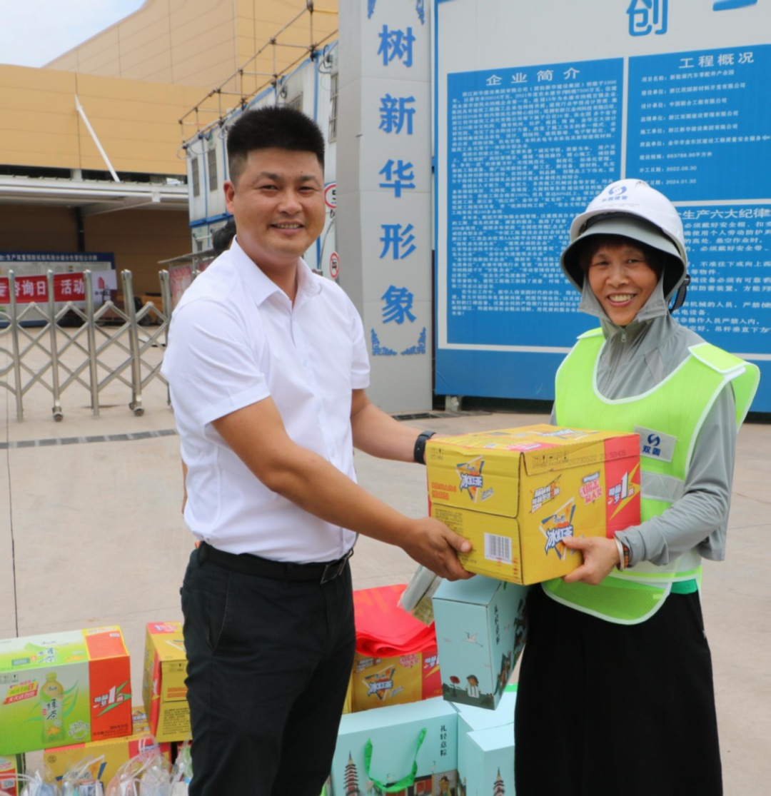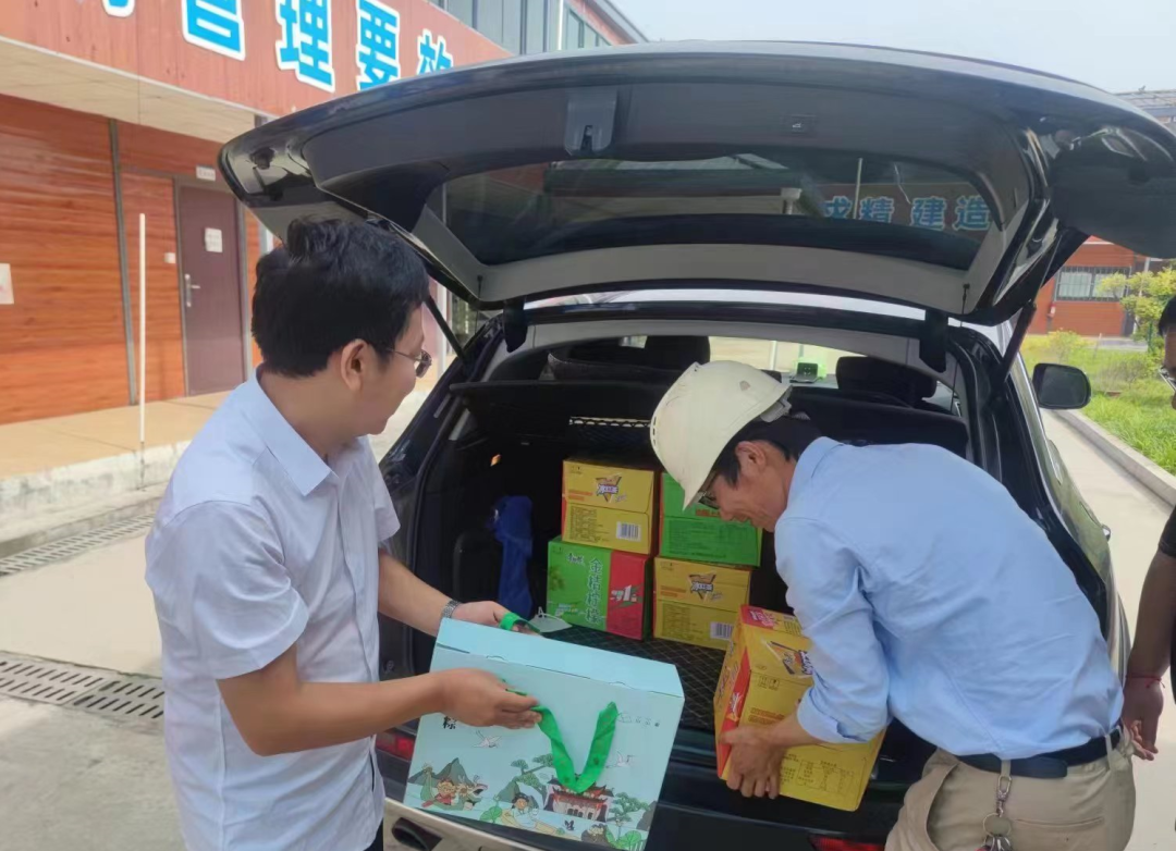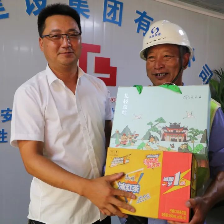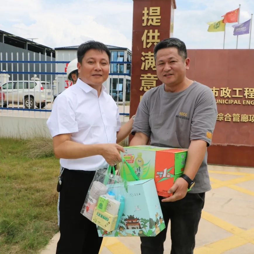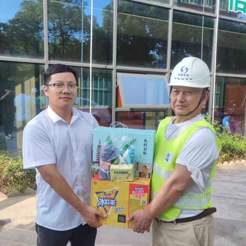 公司領導兵分兩路前往各項目部展開慰問。大家為各項目員工送上了節(jié)日祝福及端午粽子禮盒、解暑飲料、藿香正氣水等防暑降溫禮包。