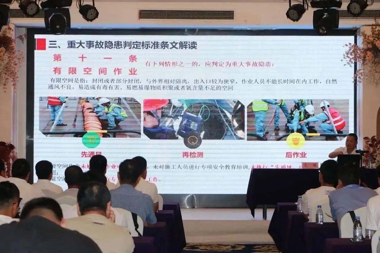 授課過程中,王總聚焦事故隱患的定義、形成重大事故隱患的因素、重大事故隱患判定標準條文解讀等三個方面,進行系統性講解。同時,他還對房屋市政工程生產安全重大事故隱患判定標準(2022版)的條款內容進行了詳細解讀。王總以實際案例輔助講解,深入淺出,通俗易懂,參會人員全神貫注、認真聆聽,不時記錄下重點。王總的授課有效提高了與會人員的安全生產意識,進一步提高了大家對重大事故隱患的識別和判定能力。