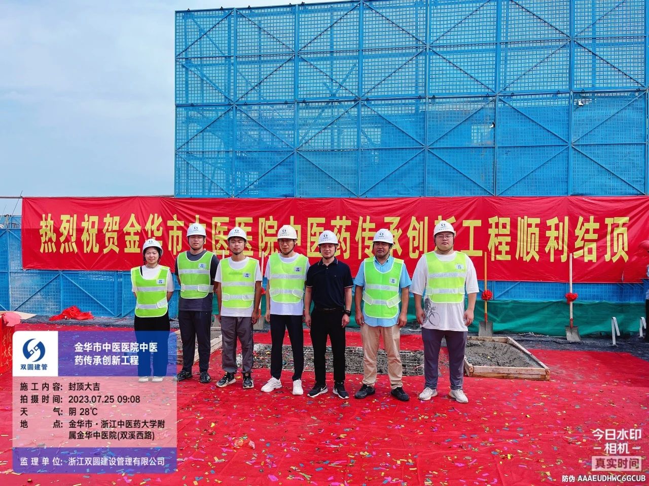 7月25日上午9時,金華市中醫(yī)醫(yī)院中醫(yī)藥傳承創(chuàng)新工程項目在工地主樓樓頂舉行項目結(jié)頂儀式。雙圓建管總經(jīng)理王斌、項目監(jiān)理部人員及各參建單位相關(guān)領(lǐng)導(dǎo)出席儀式。