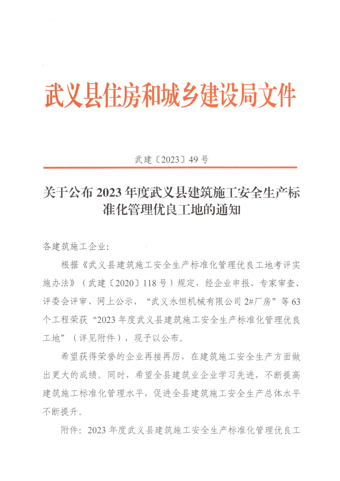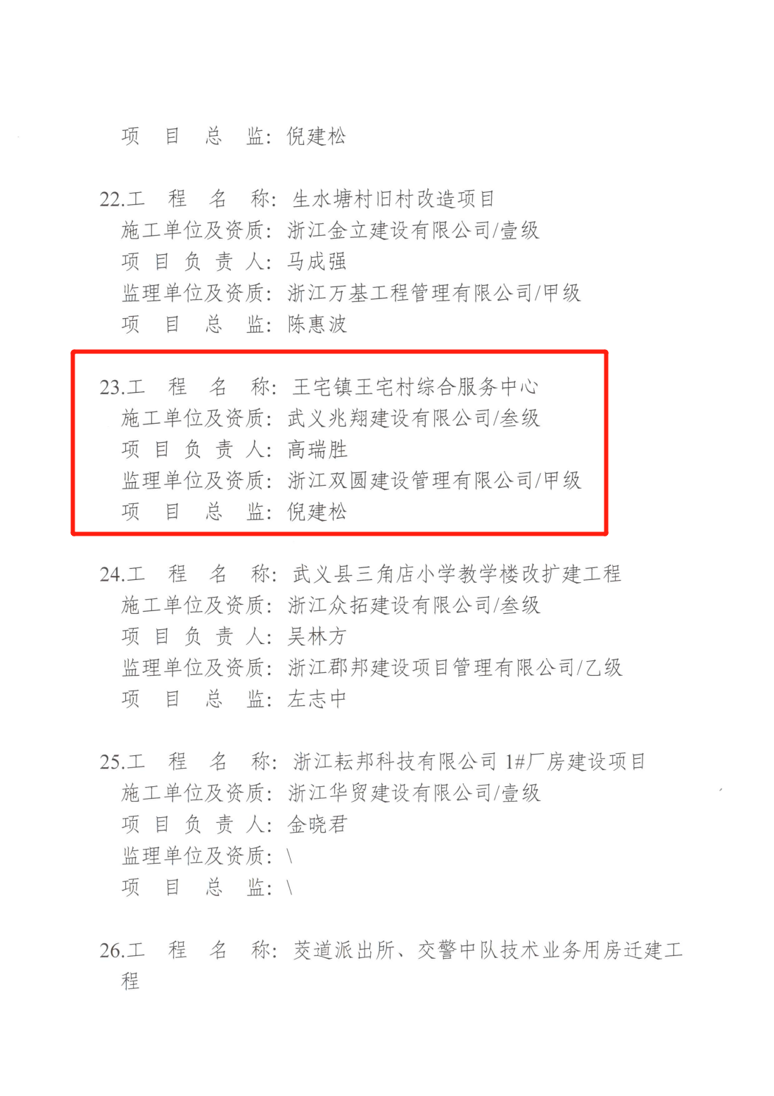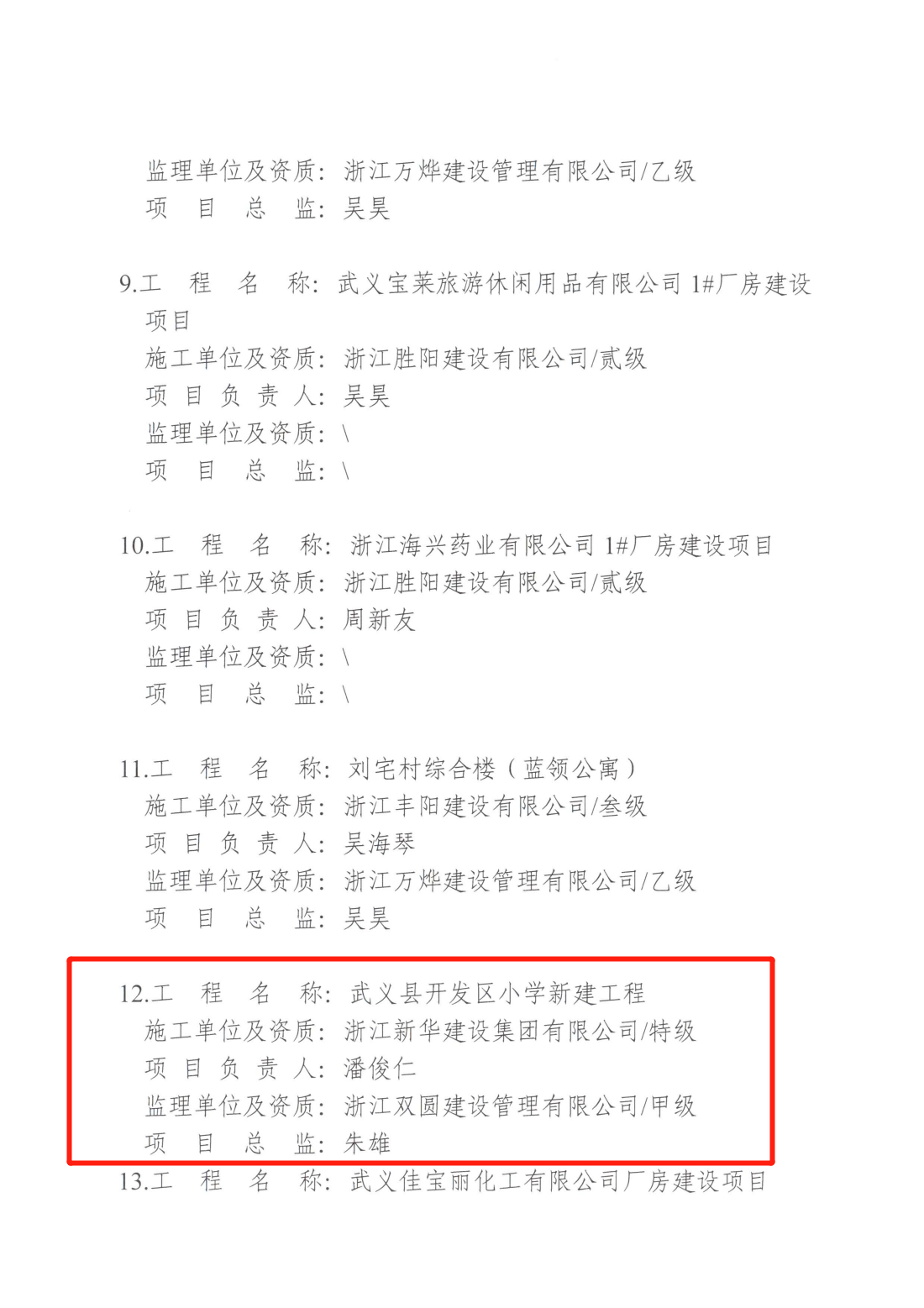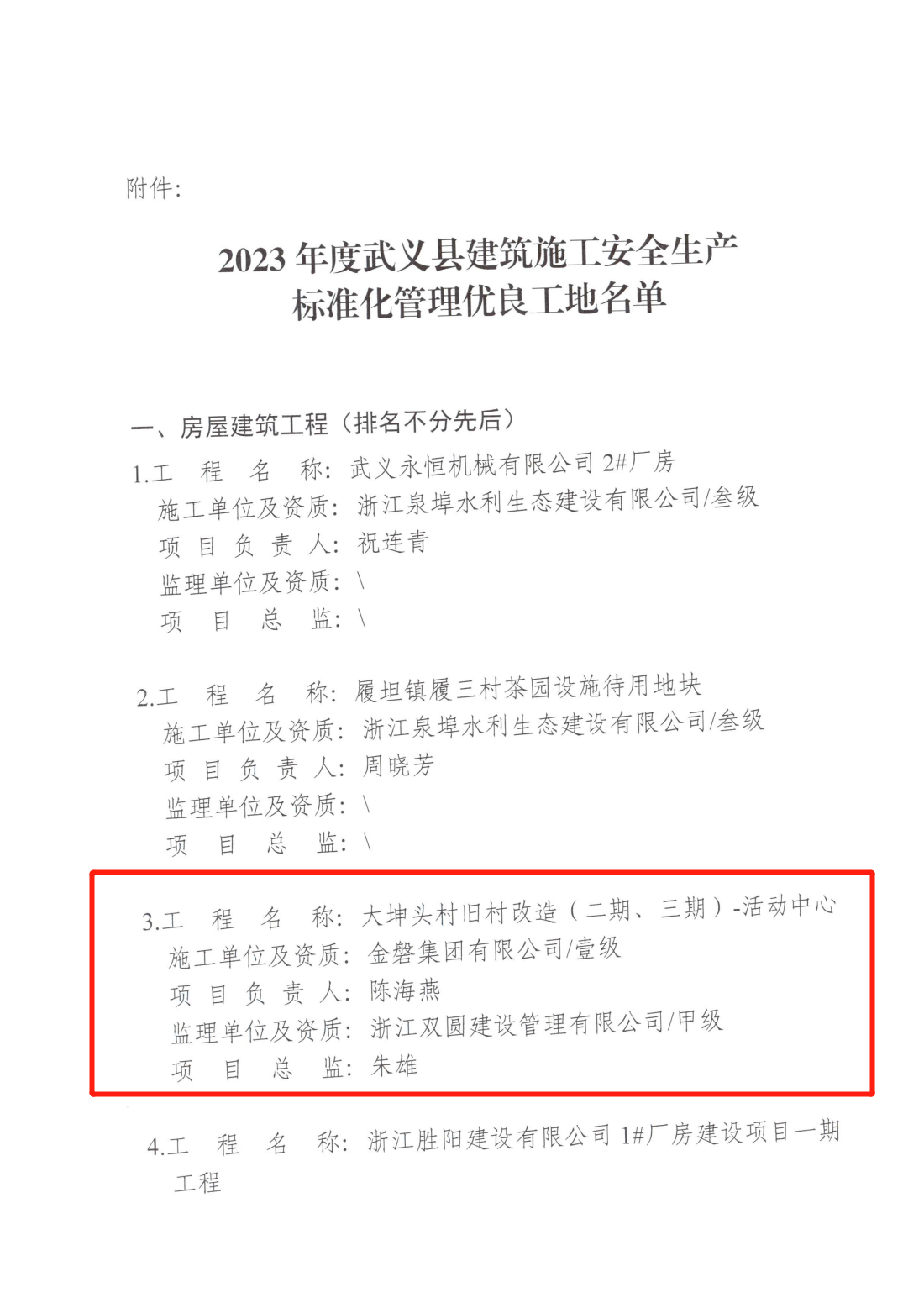 7月26日,武義縣住房和城鄉建設局公布2023年度武義縣建筑施工安全生產標準化管理優良工地,雙圓建管共10個監理項目名列其中,均為雙圓建管下轄武義分公司項目業績。