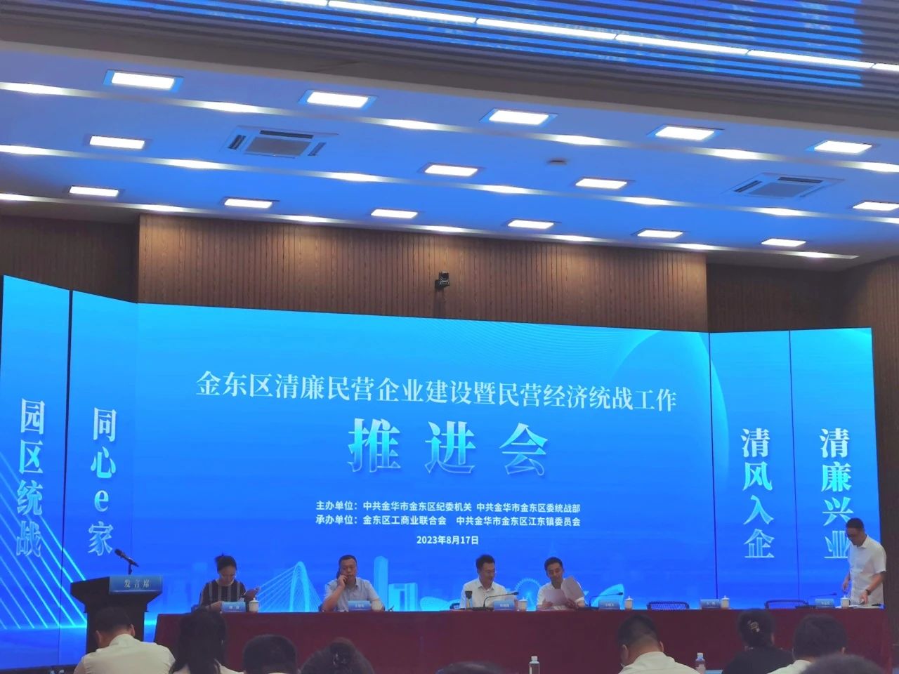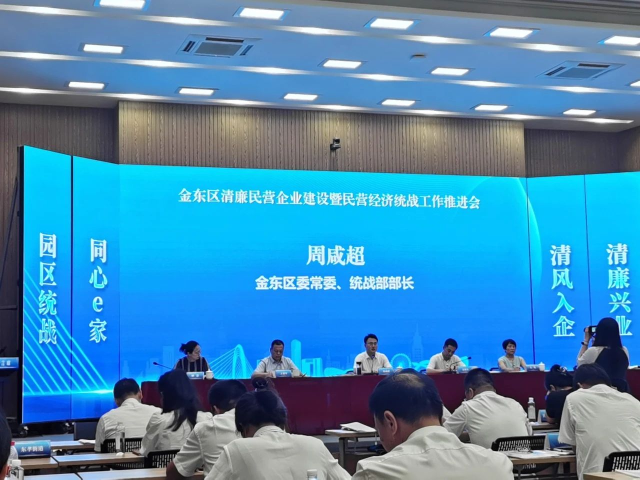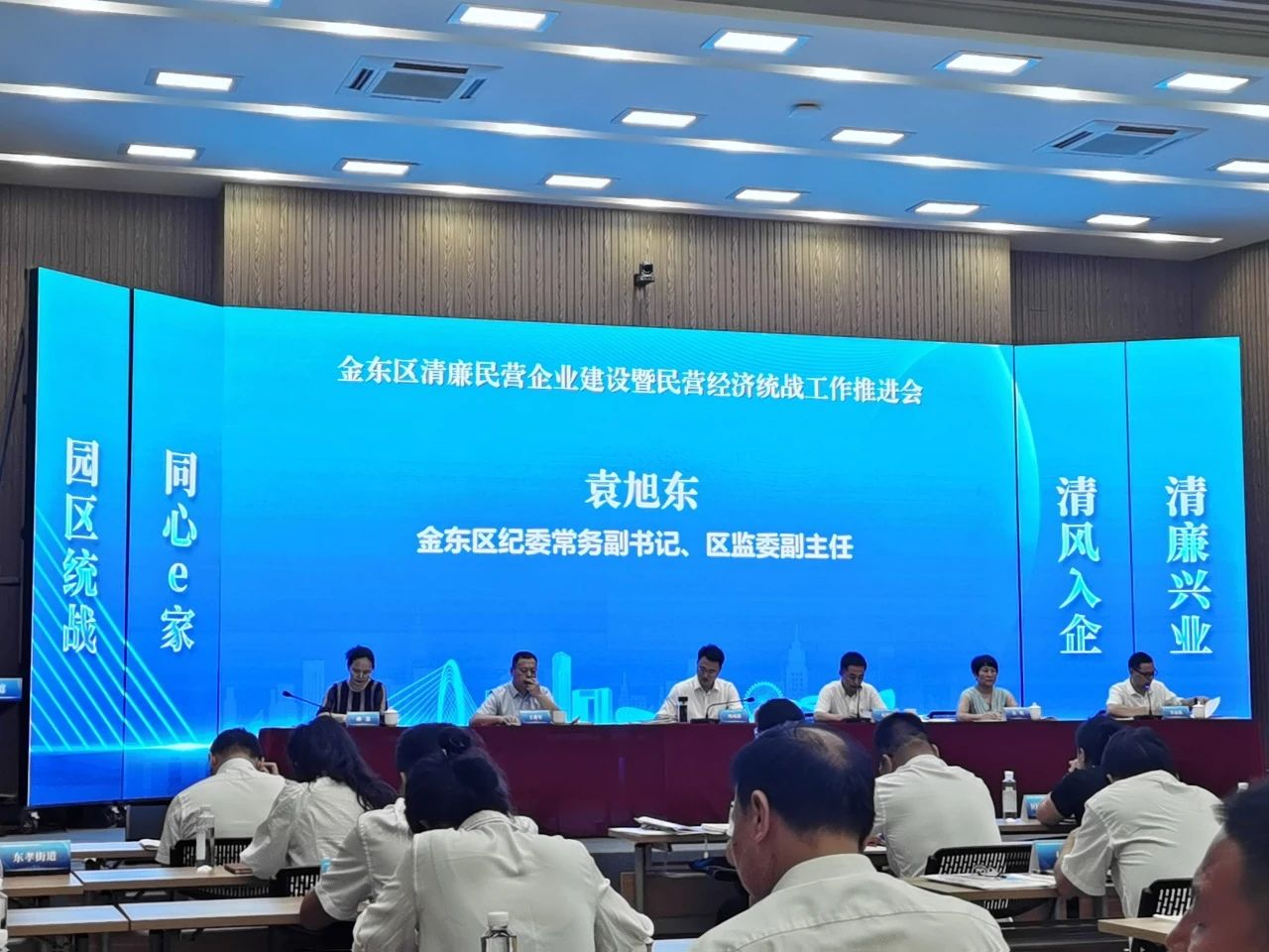 為縱深推進清廉民企建設,8月17日,金東區紀委機關聯合區委統戰部召開清廉民營企業建設暨民營經濟統戰工作推進會。區委常委、統戰部部長周咸超、金東區紀委常務副書記、區監委副主任袁旭東等領導出席會議。區委統戰部副部長、區工商聯黨組書記李志賓主持會議。雙圓建管作為清廉民企建設重點培育企業參加會議。