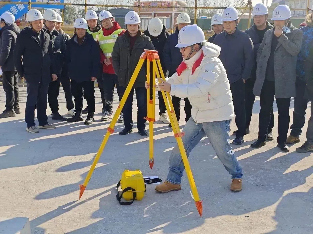 在實操環節,現場隨機抽取了付明春、潘紅飛兩位總監分別進行水準儀、回彈儀的實操互動。根據兩位總監的操作表現,由總經理王斌進行了點評指導,并由孫總和葉總進行了標準化示范。