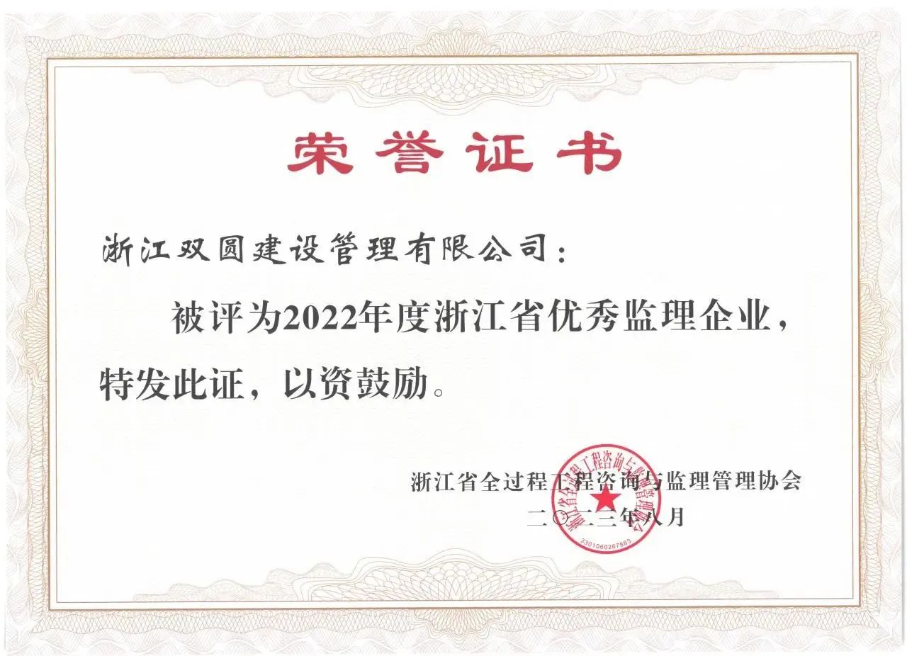 【凝心聚力爭先進】——雙圓建管榮獲“浙江省優秀監理企業”稱號