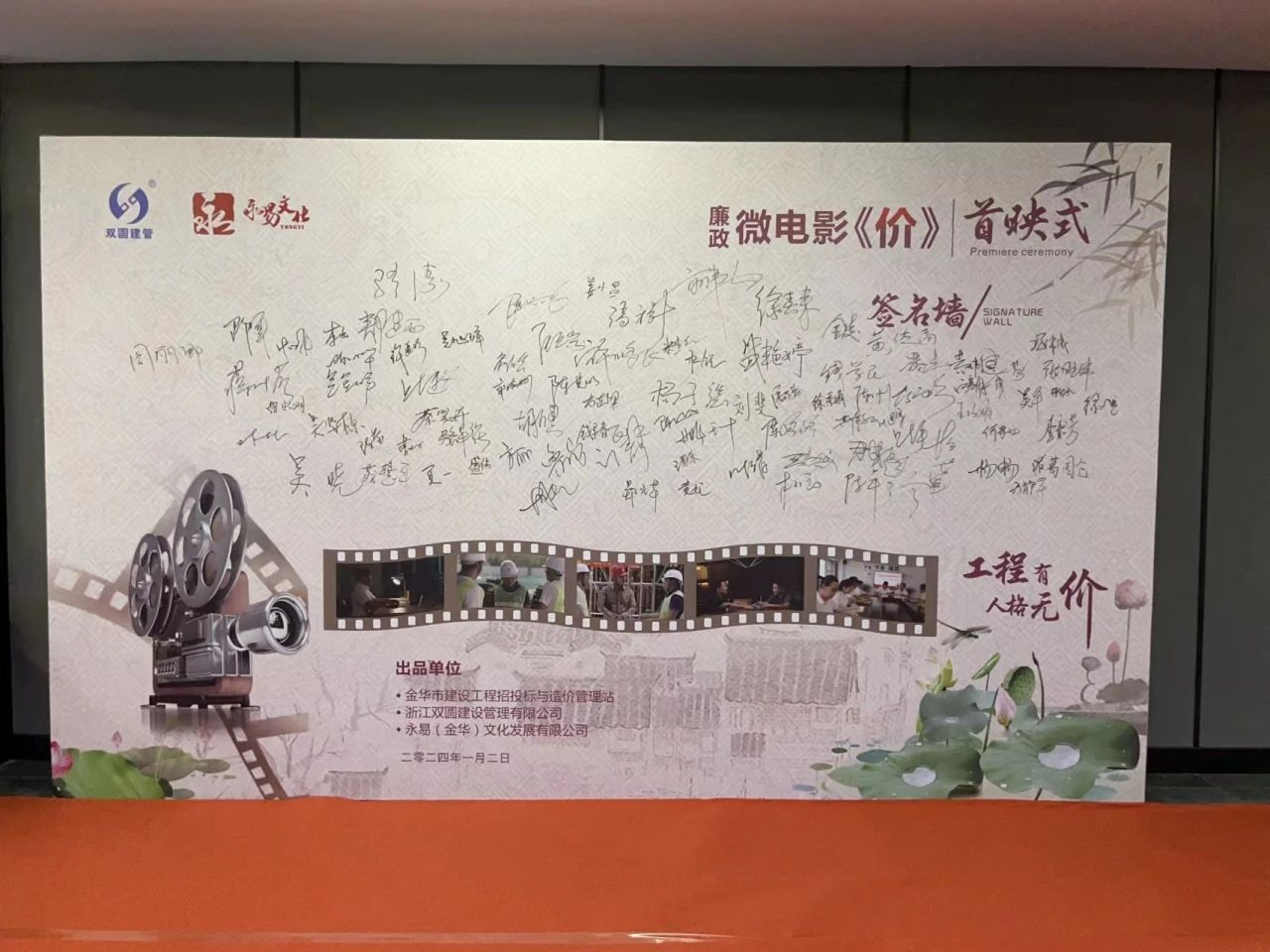“工程有價(jià),人格無(wú)價(jià)”。1月2日下午,歷經(jīng)5個(gè)月的籌劃、拍攝和后期制作,由雙圓建管出品的廉政微電影《價(jià)》在金華市橫店電影院舉行隆重的首映式,金華市市直機(jī)關(guān)工委委員黃傳高,金華市住房和城鄉(xiāng)建設(shè)局黨委委員、副局長(zhǎng)徐春來(lái)出席儀式并致辭。金華市住房和城鄉(xiāng)建設(shè)局相關(guān)處室、建設(shè)行業(yè)各協(xié)會(huì)領(lǐng)導(dǎo)與金華市咨詢(xún)企業(yè)代表約140余人參加首映式,共同見(jiàn)證微電影《價(jià)》精彩面世,網(wǎng)絡(luò)直播同時(shí)上線。