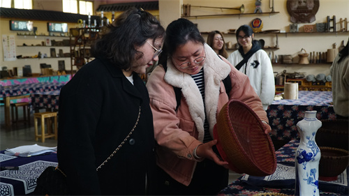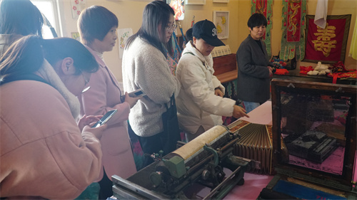 “這個像小孩用的··”“養蜂的··”看著眼前這個木桶一樣的東西,大家紛紛開始大膽猜測。最后國家級非物質文化遺產婺州窯燒制技藝代表性傳承人呂永明老師揭開謎底,該物品是用于制作瓦片的工具。在非遺文化參觀現場,呂永明老師還為大家詳細介紹了婺劇戲服,印刷工具,拓印,雕版,木雕,棕編,染布等一系列具有浙江本地特色的非遺項目。