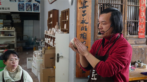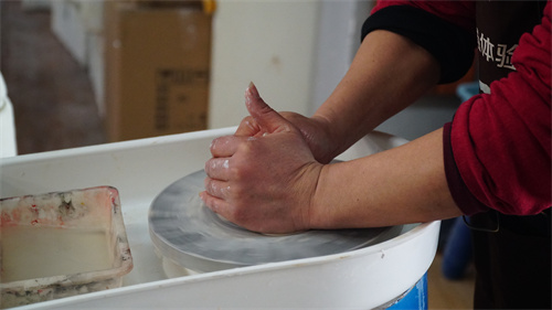 來到陶藝體驗制作坊內,呂老師向大家簡單介紹了陶土特性、制作工序及注意事項等。隨后進行拉坯演示,看著陶坯在老師手里徒手生花,變換著各種造型,令大家深感贊嘆,爭相躍躍欲試,想要親自體驗一下陶泥那細膩的觸感,享受在自己手下變幻無窮的樂趣。