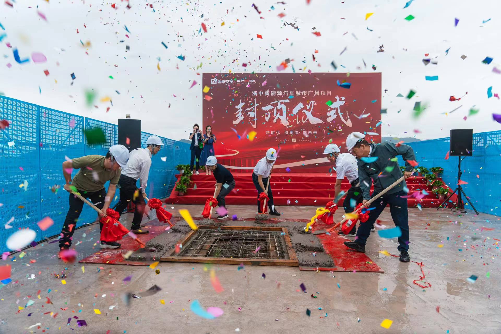 隨著參建各方代表共同揮鍬澆下最后一方混凝土,浙中新能源汽車城市廣場項(xiàng)目主體建筑順利實(shí)現(xiàn)結(jié)頂。