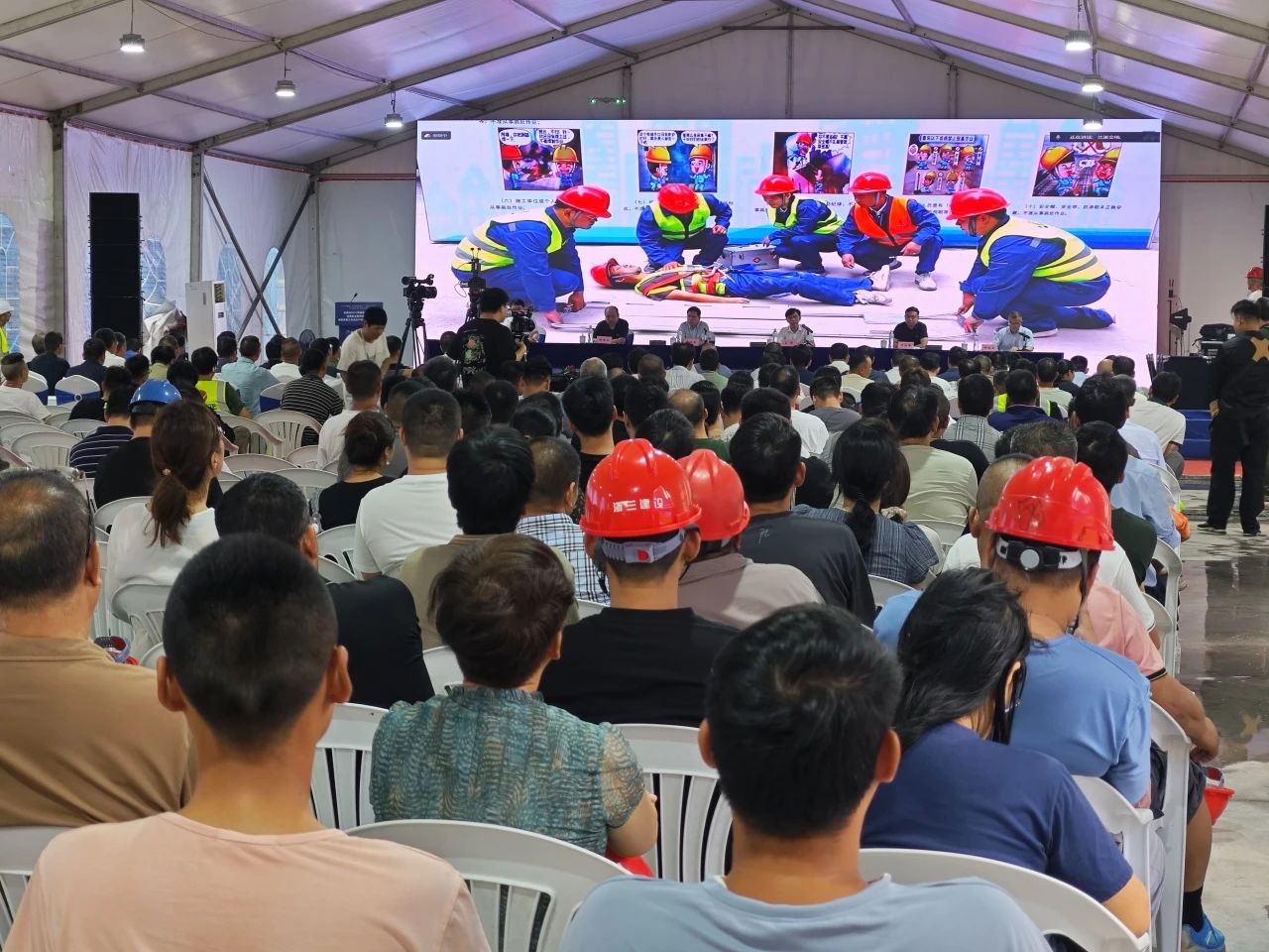 本次觀摩會采取實地觀摩、展示交流、現場解說等方式進行,觀摩活動現場設置了智慧工地展廳、安全體驗區、樣板展示區、黨建展示區等多個展區,多層次、多維度展示了項目在黨建引領、安全生產、質量管理、科技賦能等方面的亮點舉措,充分展示了項目現場安全生產示范亮點,達到了交流學習、分享經驗、取長補短的目的。