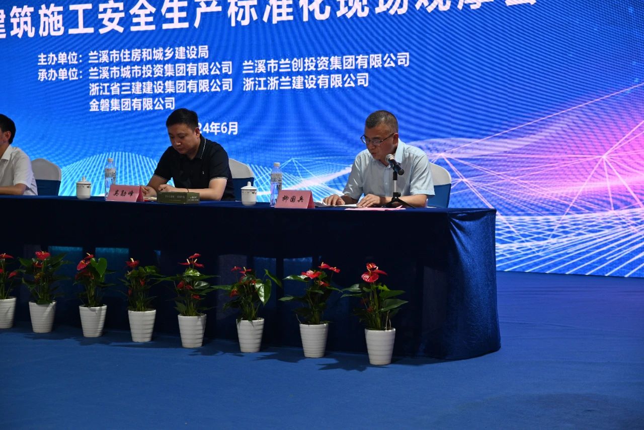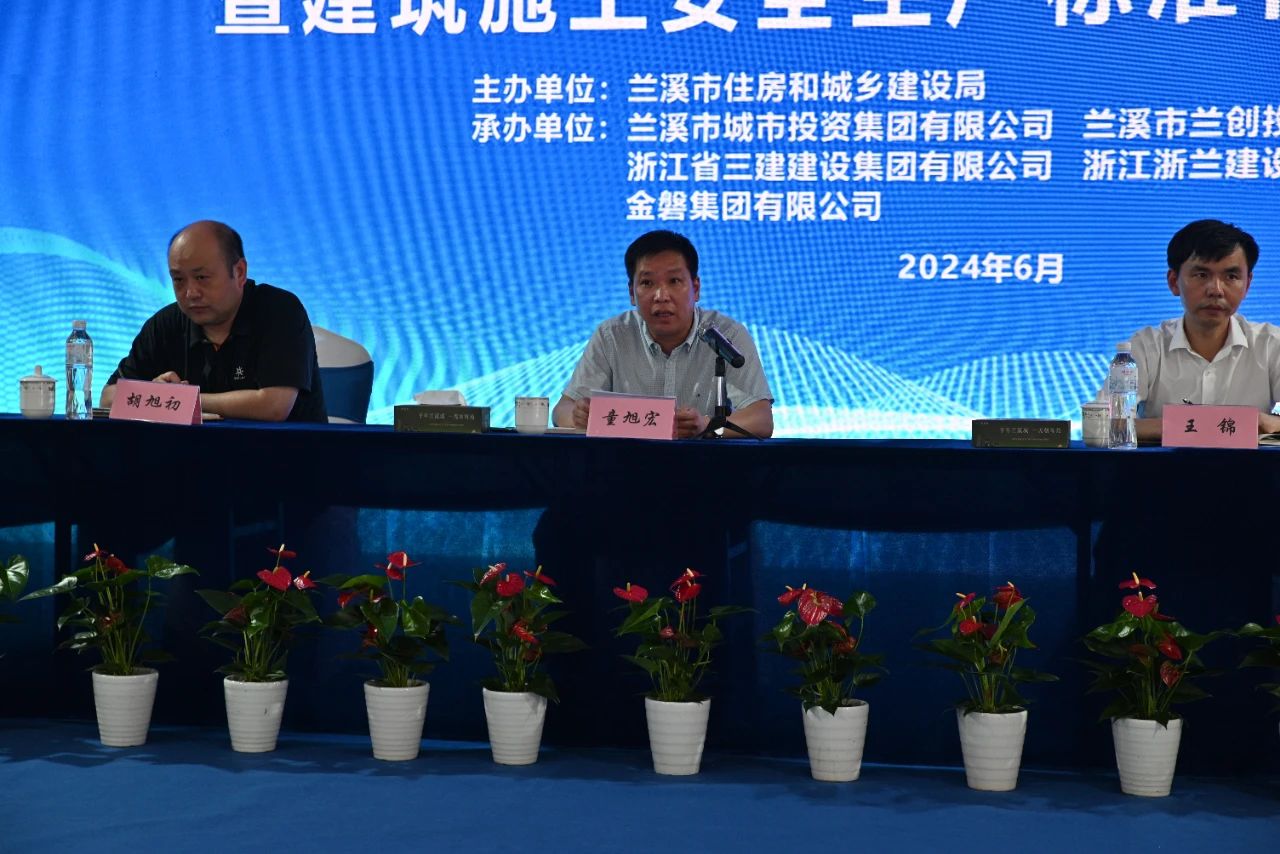 本次會議由蘭溪市住建局黨委委員柳國兵主持。蘭溪市人民政府辦公室副主任童旭宏,蘭溪市住建局黨委書記、局長王錦,蘭溪市城投集團黨委副書記、董事長吳勛峰,蘭溪市應急管理局黨委委員、副局長胡旭初,浙江省三建建設集團黨委委員、副總經理劉勇等領導出席活動。蘭溪市建設局相關科室,蘭溪市施工總承包企業、監理企業主要負責人,在建項目相關人員等共約200余人參加活動。雙圓建管監理團隊作為主會場監理方參會。