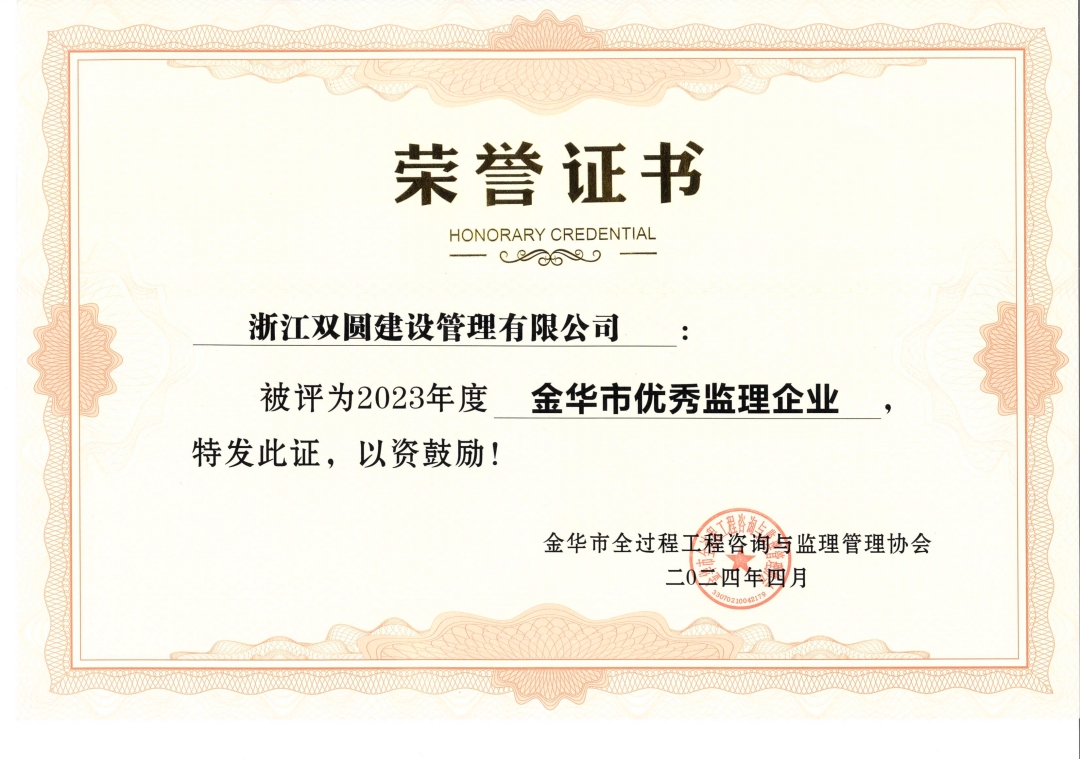 多年來,雙圓建管一直秉持著精益求精的工作態度,不斷追求卓越,以專業的知識和豐富的經驗為每一個項目保駕護航。榮獲“金華市優秀監理企業”稱號,是對公司全體員工辛勤付出的肯定,更是對公司信譽和實力的認可。