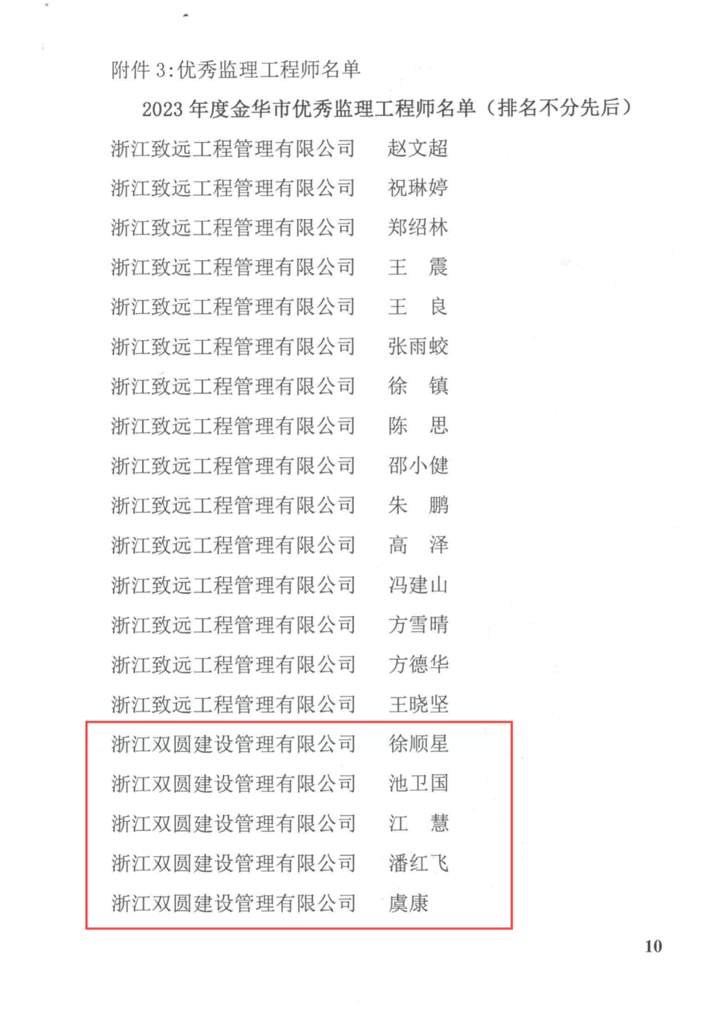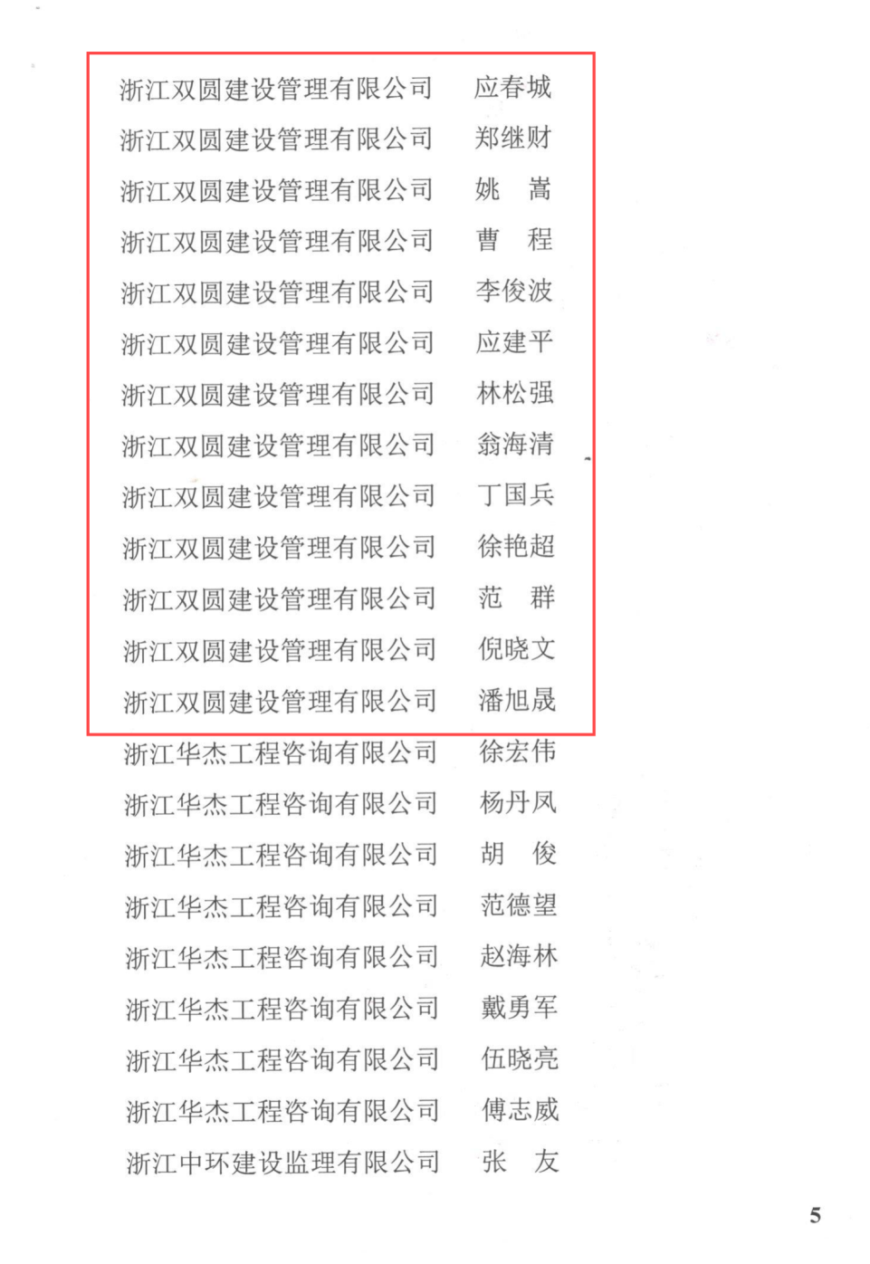 會上,協會秘書長王建越宣讀《關于公布2023年度金華市優秀監理企業及個人評選結果的通知》,雙圓建管榮獲“2023年度金華市優秀監理企業”稱號,應春城等13人獲評“金華市優秀總監理工程師”、徐順星等15人獲評“金華市優秀監理工程師”,陶總作為公司代表上臺領獎。