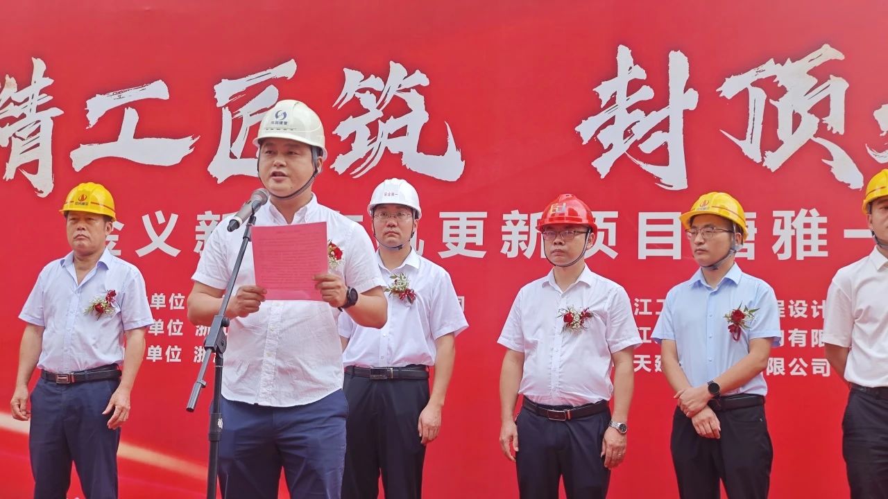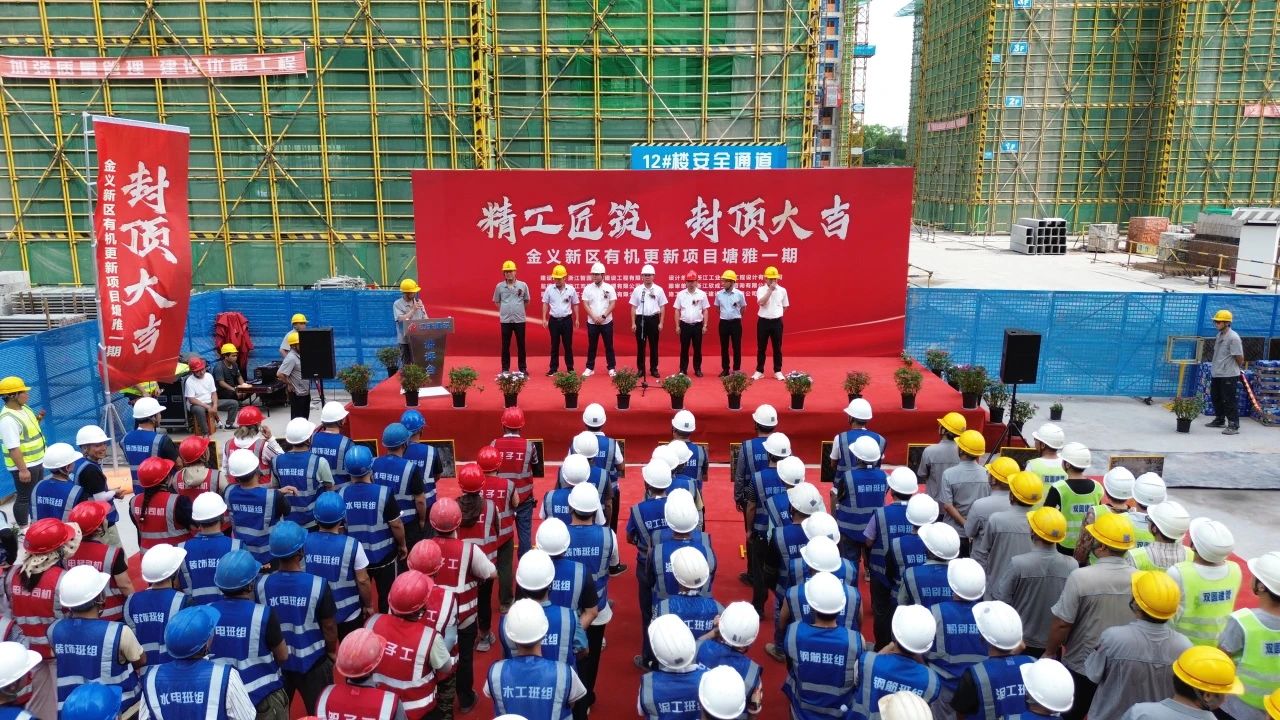 7月9日上午,由雙圓建管監理的金義新區有機更新項目塘雅一期項目隆重舉行結頂儀式,建設單位代表、各參建單位負責人出席儀式,雙圓建管常務副總陶奉孝和項目監理團隊參加封頂儀式。
