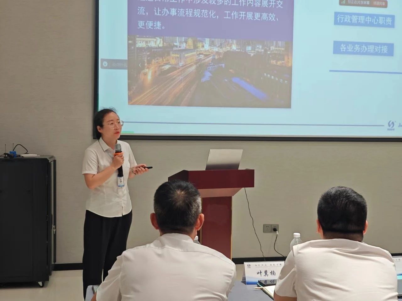 行政管理中心主任唐靜圍繞行政管理中心職責與各業務辦理對接展開交流。明確了人事勞資、行政辦公、教育培訓、綜合后勤四方面的工作對接人與總公司行政人事管理要求,推動管理流程規范化、員工隊伍專業化。