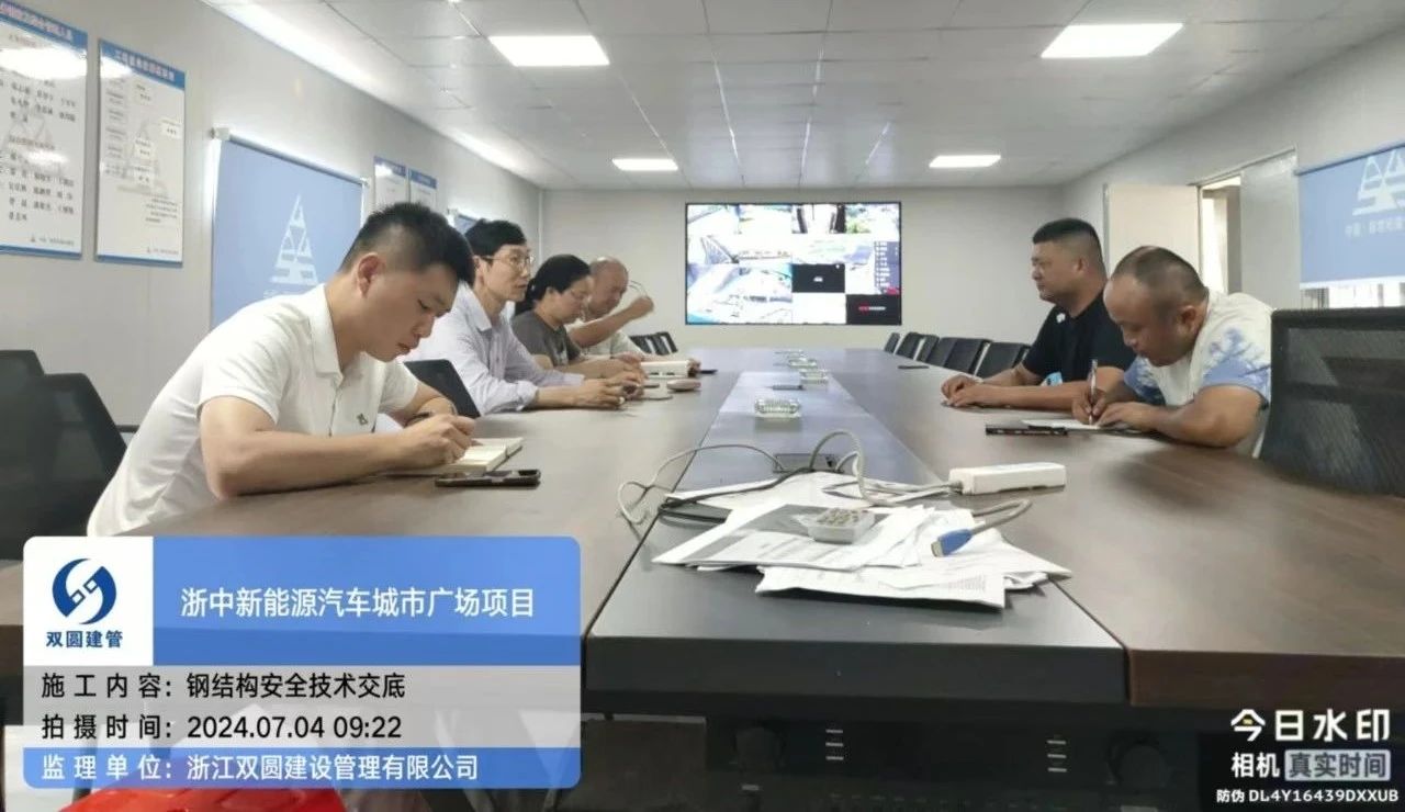 為進一步提升公司監理人員專業技能,確保鋼結構工程監理工作的質量與安全,雙圓建管于浙中新能源汽車城市廣場項目開展鋼結構吊裝技術要點現場學習會并特邀施工單位項目經理雷偉峰和項目技術人員進行講解。公司總工程師陽橋輝及項目總監20余人參加活動。