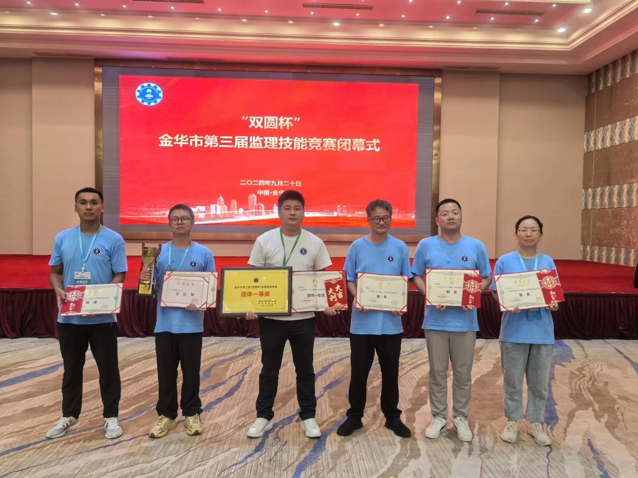 9月20日,由金華市住房和城鄉建設局、金華市總工會聯合主辦,金華市全過程工程咨詢與監理管理協會和浙江雙圓建設管理有限公司承辦的金華市第三屆(雙圓杯)監理技能競賽圓滿落幕。代表金東區代表隊參賽的我公司五位隊員表現優異榮獲“團體一等獎”。在個人賽中,我公司孫雨培成績突出,總分全市第一,榮獲金獎,同時被金華市總工會授予“金藍領”稱號。