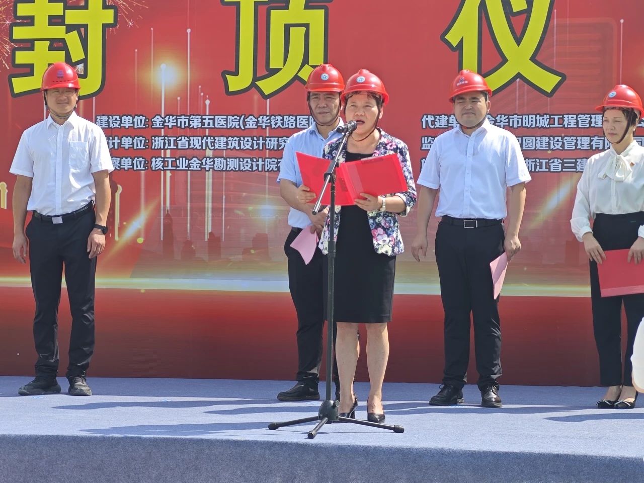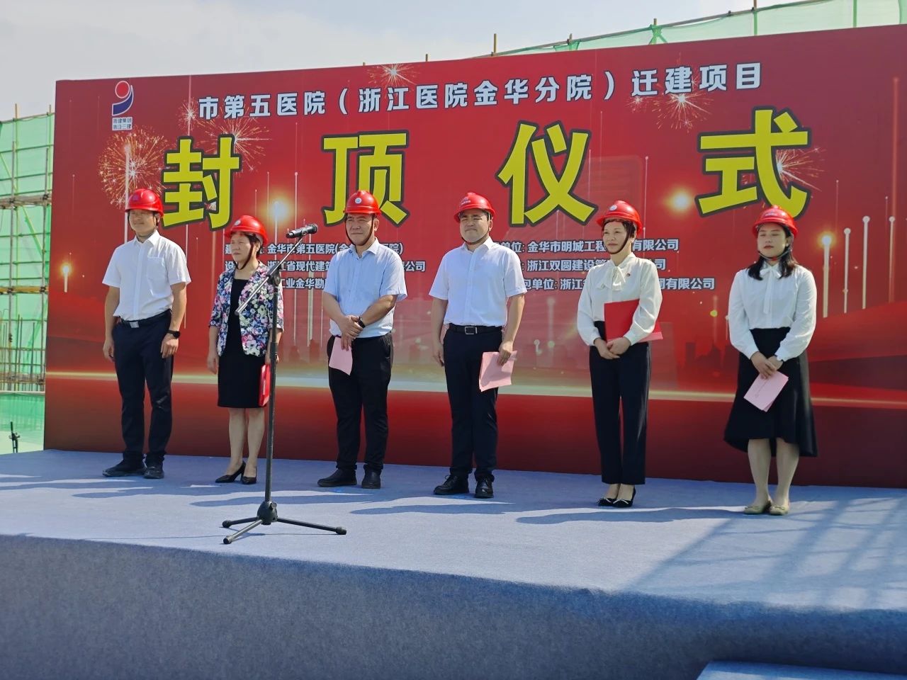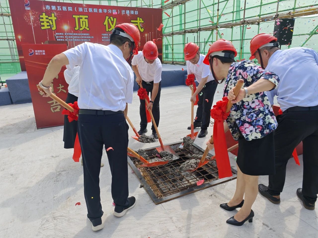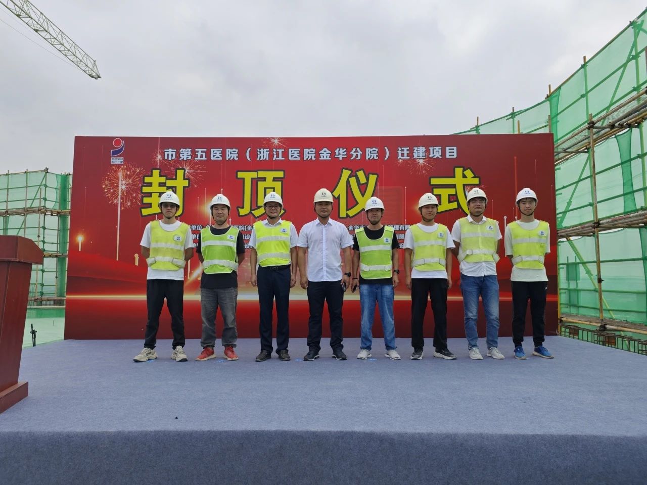 浙江醫(yī)院黨委委員、副院長宋柏杉,婺城區(qū)區(qū)委常委、副區(qū)長陳鵬進(jìn),市衛(wèi)生健康委員會(huì)黨委委員、副主任王鳳英,市第五醫(yī)院黨委書記朱淑勤,市城市建設(shè)投資集團(tuán)有限公司黨委委員倪航勝等人出席封頂儀式,雙圓建管常務(wù)副總陶奉孝及項(xiàng)目監(jiān)理團(tuán)隊(duì)作為本項(xiàng)目監(jiān)理方代表參加儀式。