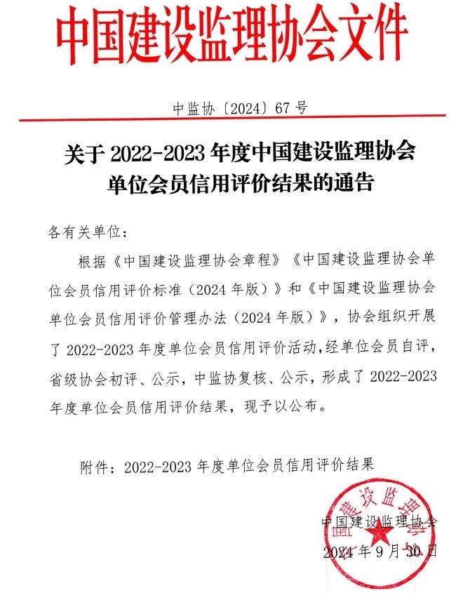 近日,中國(guó)建設(shè)監(jiān)理協(xié)會(huì)公布《關(guān)于2022-2023年度中國(guó)建設(shè)監(jiān)理協(xié)會(huì)單位會(huì)員信用評(píng)價(jià)結(jié)果的通告》,浙江雙圓建設(shè)管理有限公司憑借卓越表現(xiàn),榮獲AAA級(jí)信用評(píng)價(jià)等級(jí),該項(xiàng)榮譽(yù)標(biāo)志著雙圓建管在建設(shè)監(jiān)理領(lǐng)域的實(shí)力和信譽(yù)得到了行業(yè)高度認(rèn)可。
