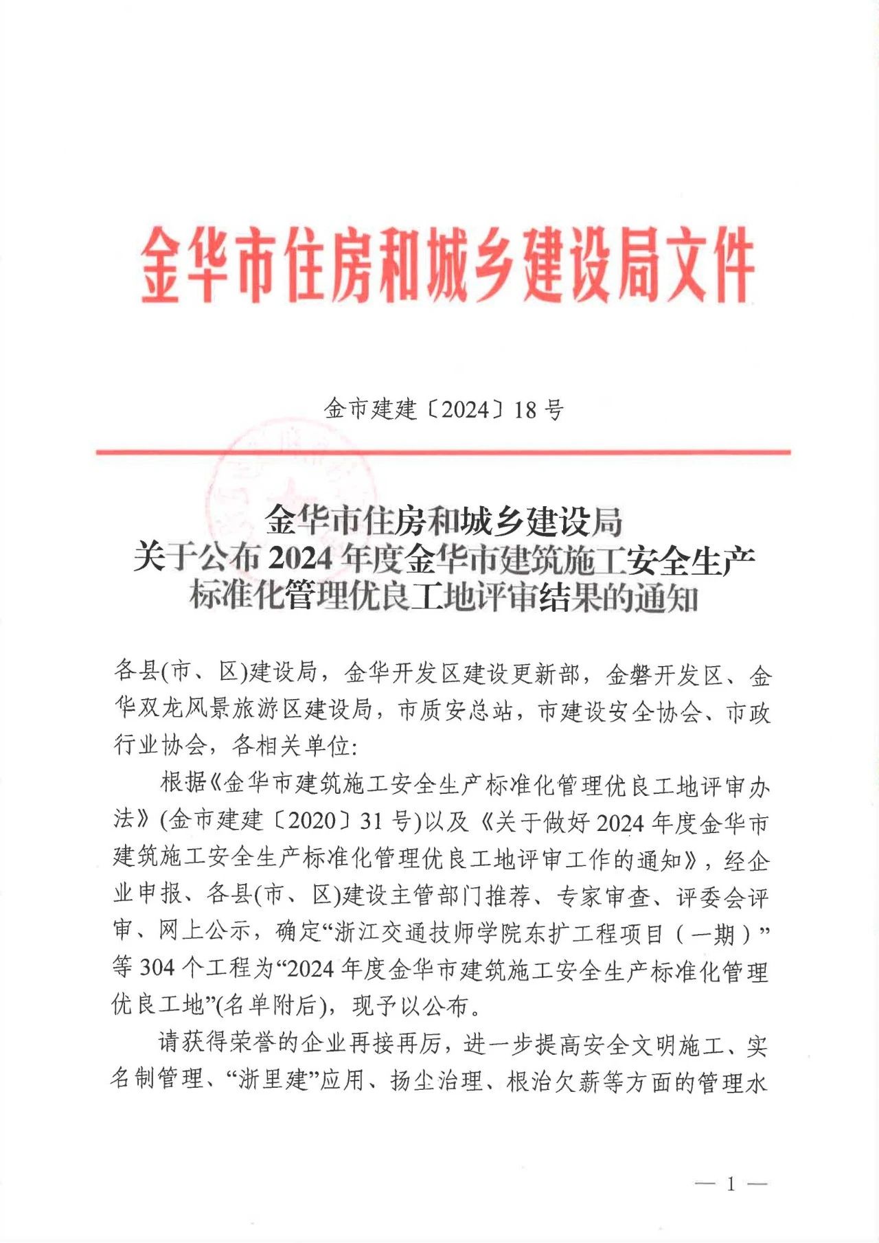 近日,多地傳來喜訊。由雙圓建管監理的二十余個項目分別榮獲杭州市、金華市、臺州市、麗水市建筑施工安全生產標準化管理優良工地榮譽,彰顯了雙圓建管在監理領域的卓越實力和專業水準。