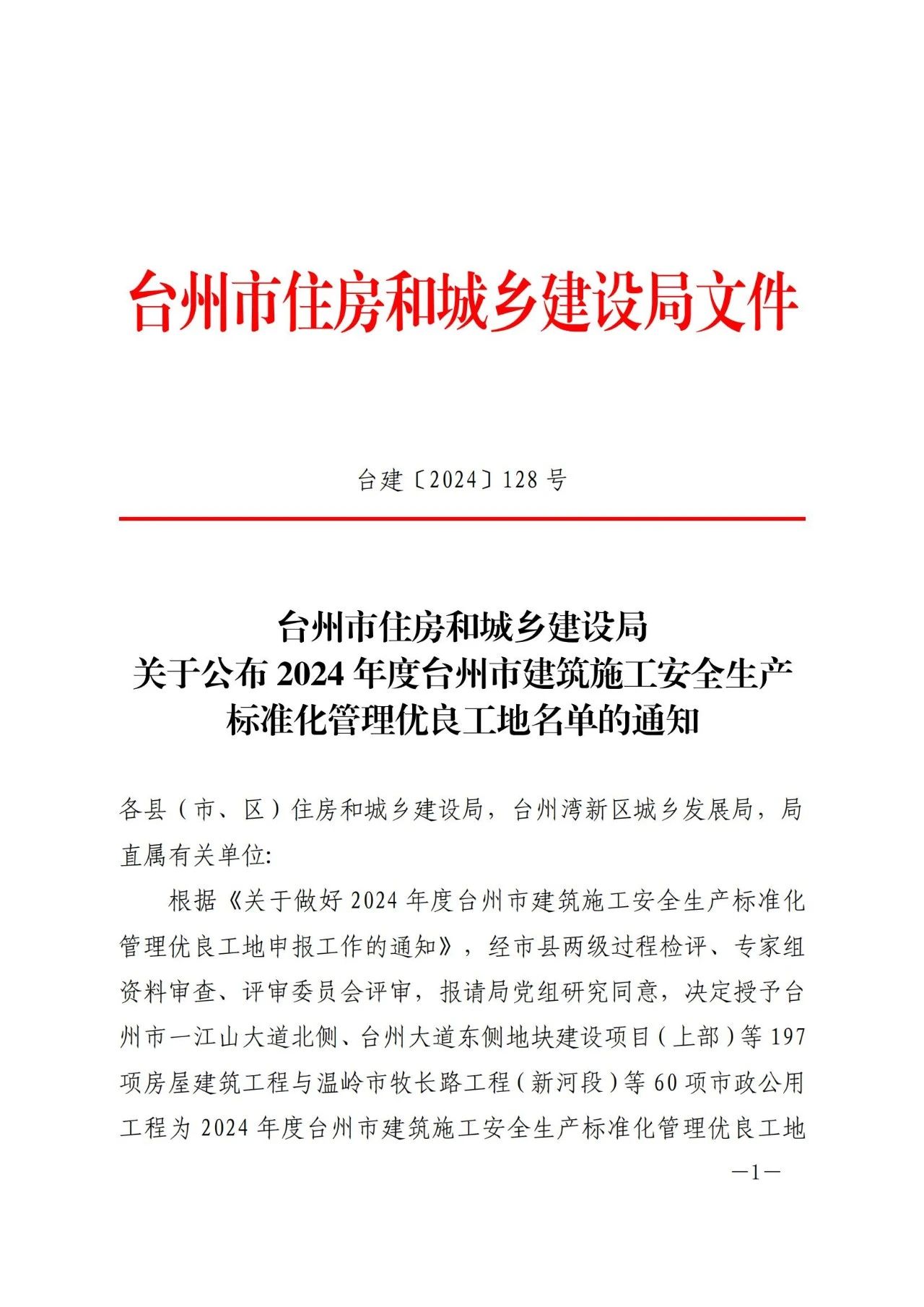 【臺州市建筑施工安全生產標準化管理優良工地】