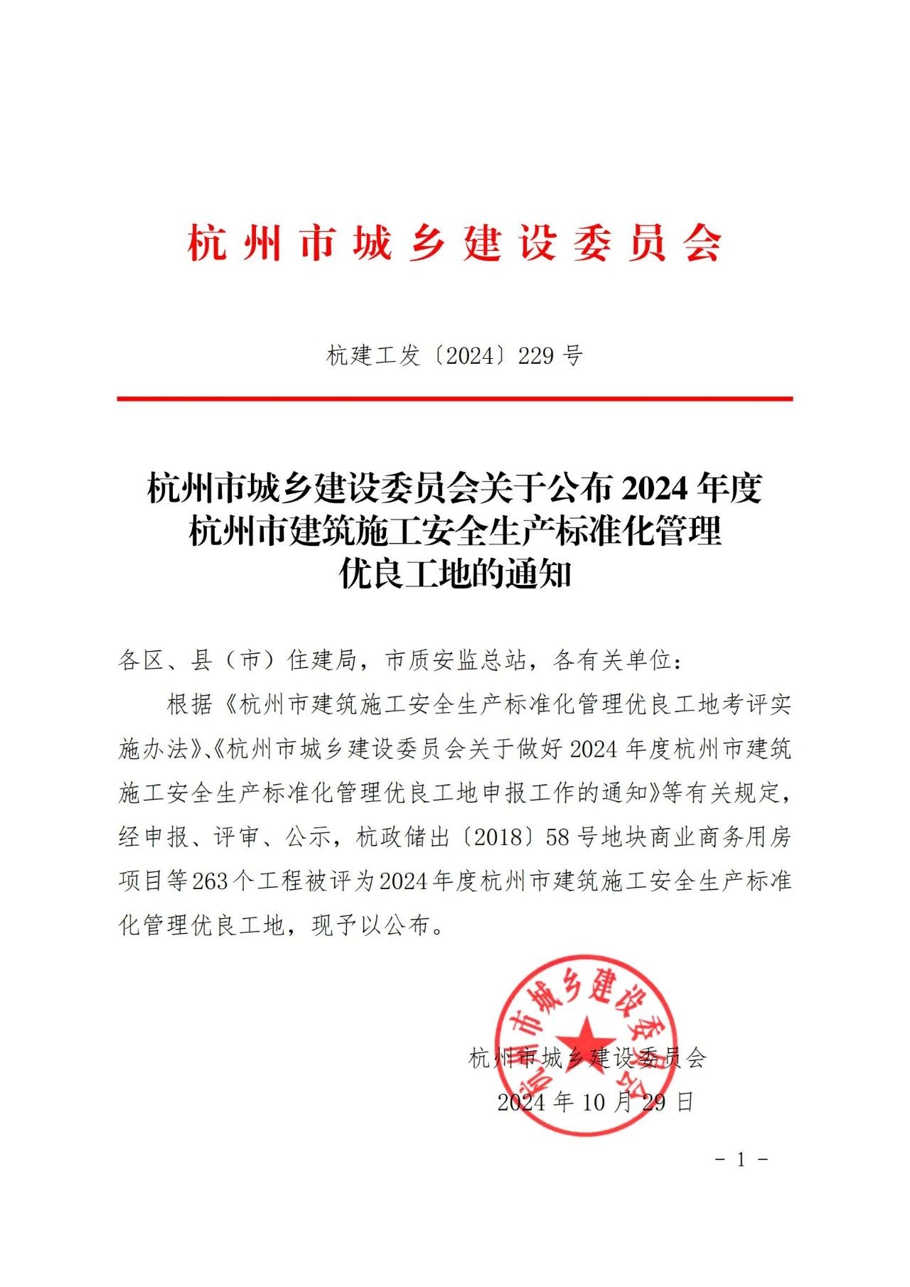 【杭州市建筑施工安全生產標準化管理優良工地】