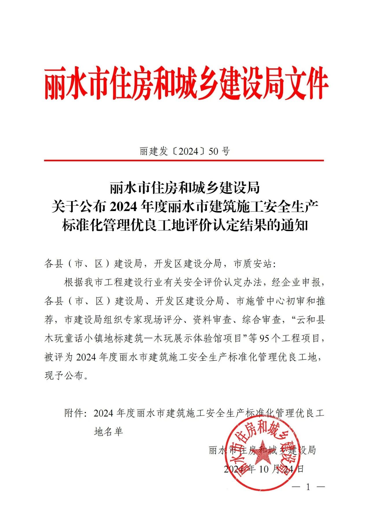 【麗水市建筑施工安全生產標準化管理優良工地】