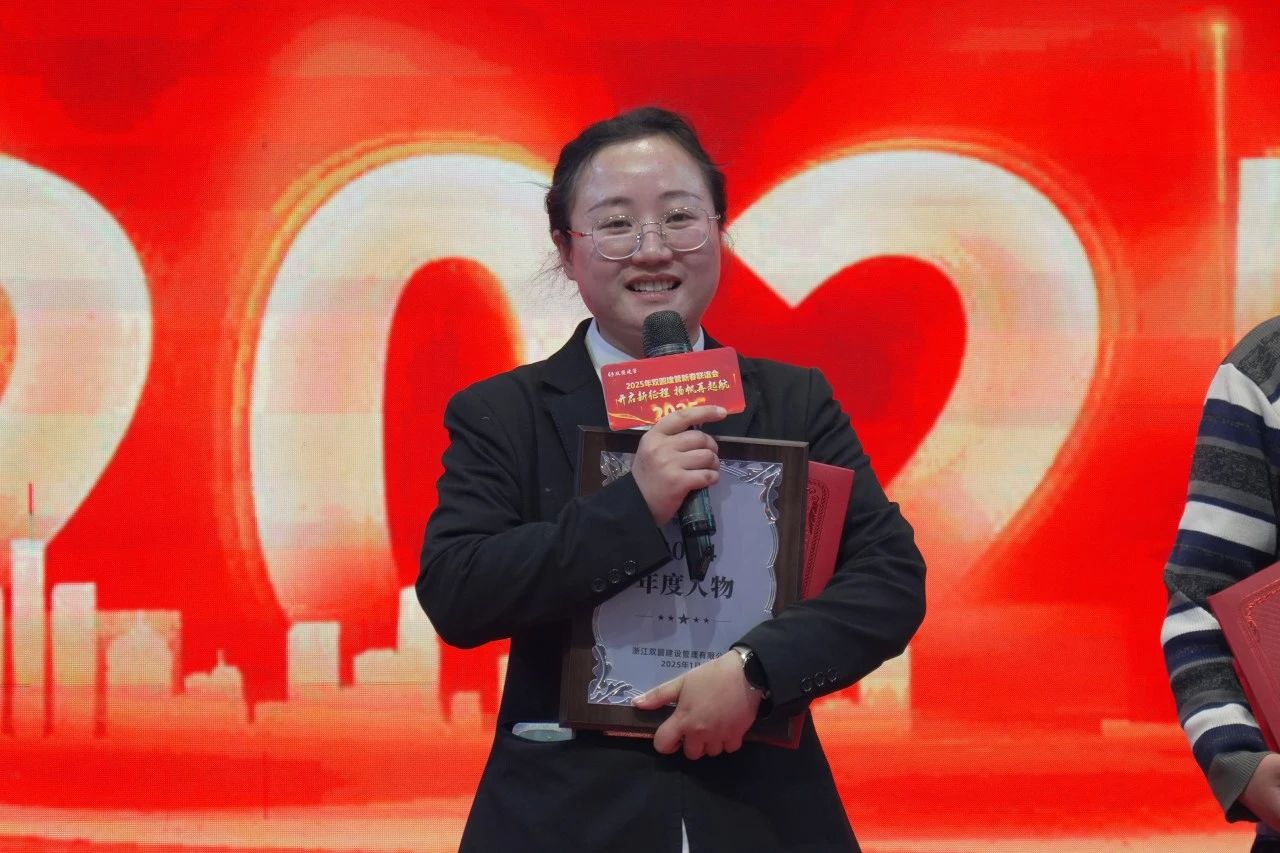 隨著2024年榮譽短片徐徐播放,一幀幀畫面記錄著公司榮耀瞬間,歲月沉淀的輝煌在此刻閃耀。隨后,董事長姜桂軍隆重揭曉2024年度人物名單,項目總監潘紅飛、行政管理中心主任唐靜在2024年用自身的拼搏與完美表現榮膺此獎項。頒獎臺上,榮譽證書與獎牌熠熠生輝,榜樣力量如春風化雨,滋潤每一位員工心田,激勵眾人對標先進、奮勇爭先。