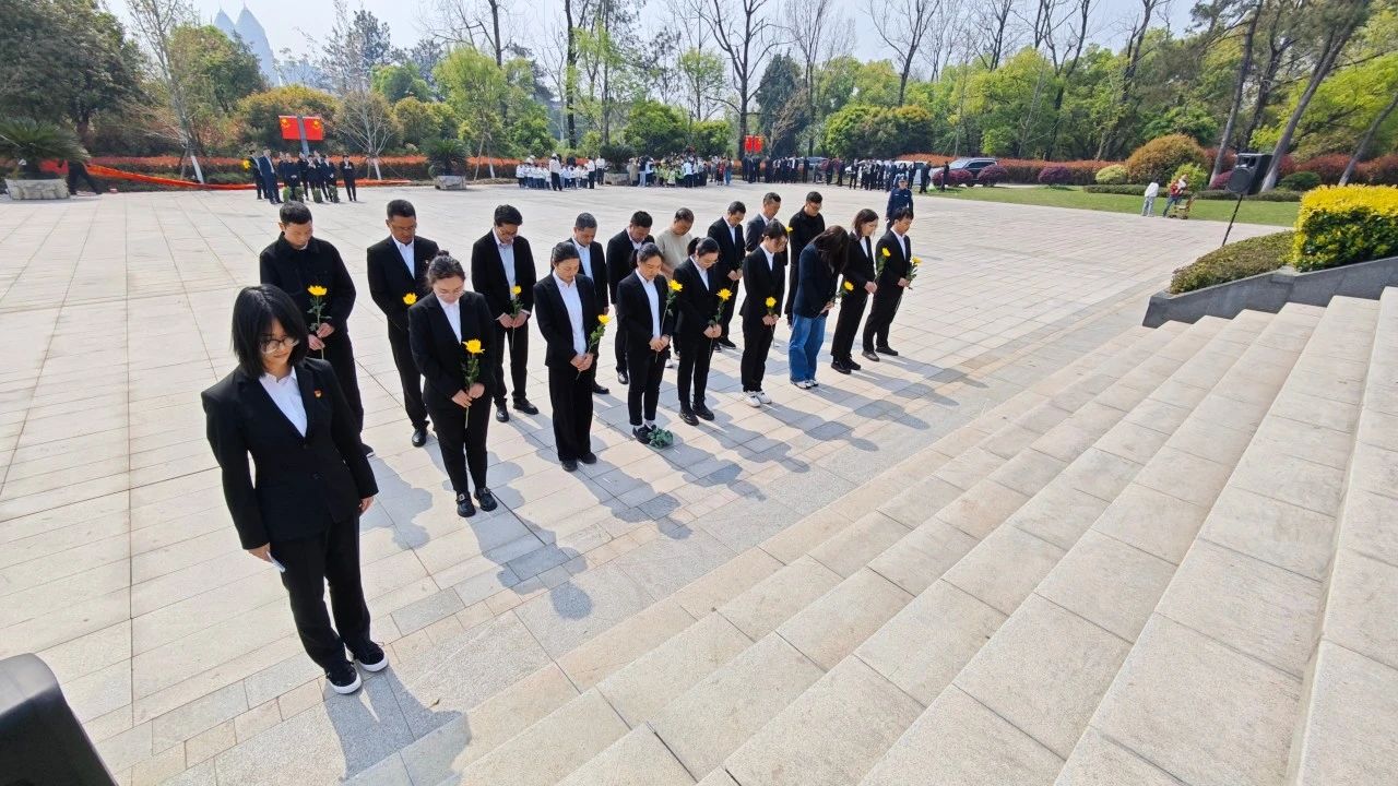 9點30分,活動在莊嚴肅穆的革命烈士紀念碑前正式開始。全體人員整齊列隊,向為民族獨立、人民解放和國家富強英勇獻身的革命先烈默哀。蒼翠松柏間,哀思如潮涌,大家垂首肅立,用無聲的致敬表達對英烈的深切緬懷。