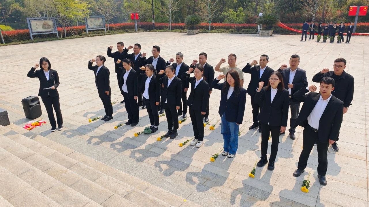 默哀結束后,在黨員代表金佳穎的帶領下,全員舉起右拳莊嚴宣誓。“我志愿加入中國共產黨……”鏗鏘有力的誓詞回蕩在陵園上空,既是對歷史的銘記,更是對未來的承諾:以先烈精神為燈塔,不忘初心勇擔當。